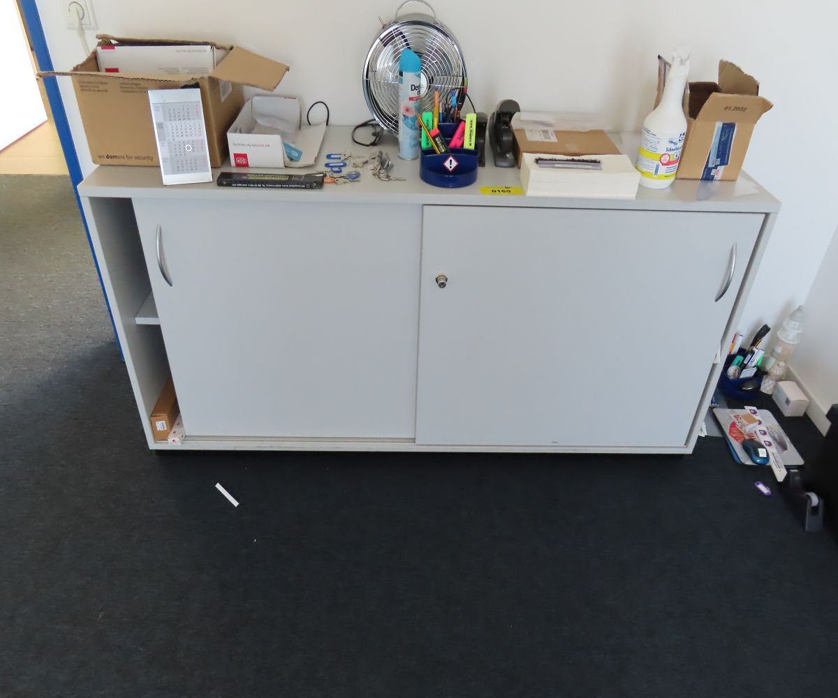 1 Aktensideboard, ca. 160 x 40 x 60 cm, Schiebetüren