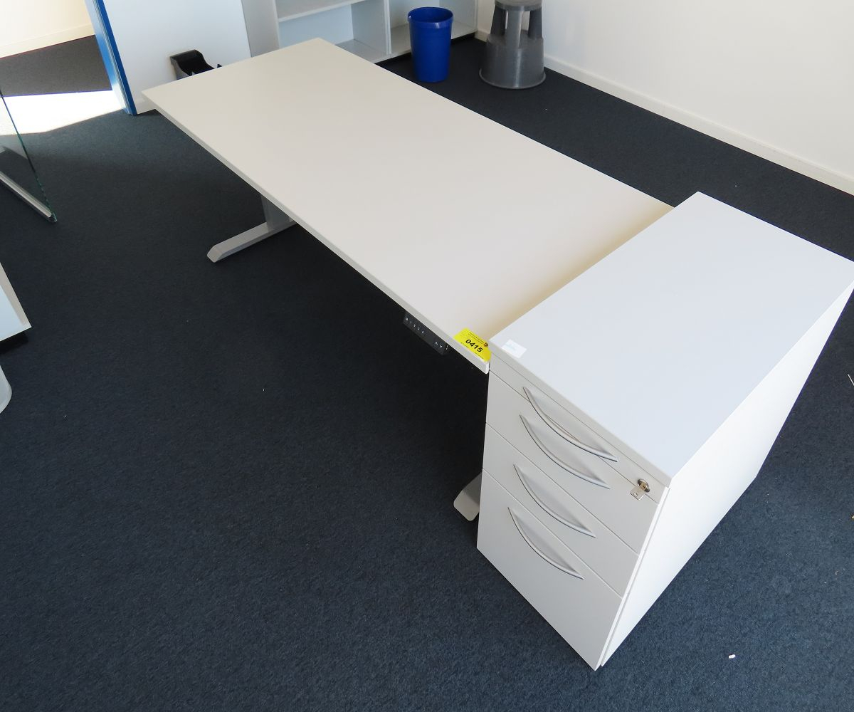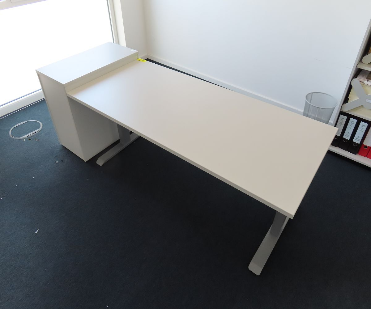 1 Schreibtisch, elektrisch höhenverstellbar, ca. 180 x 80 cm, 1 x Beistellcontainer