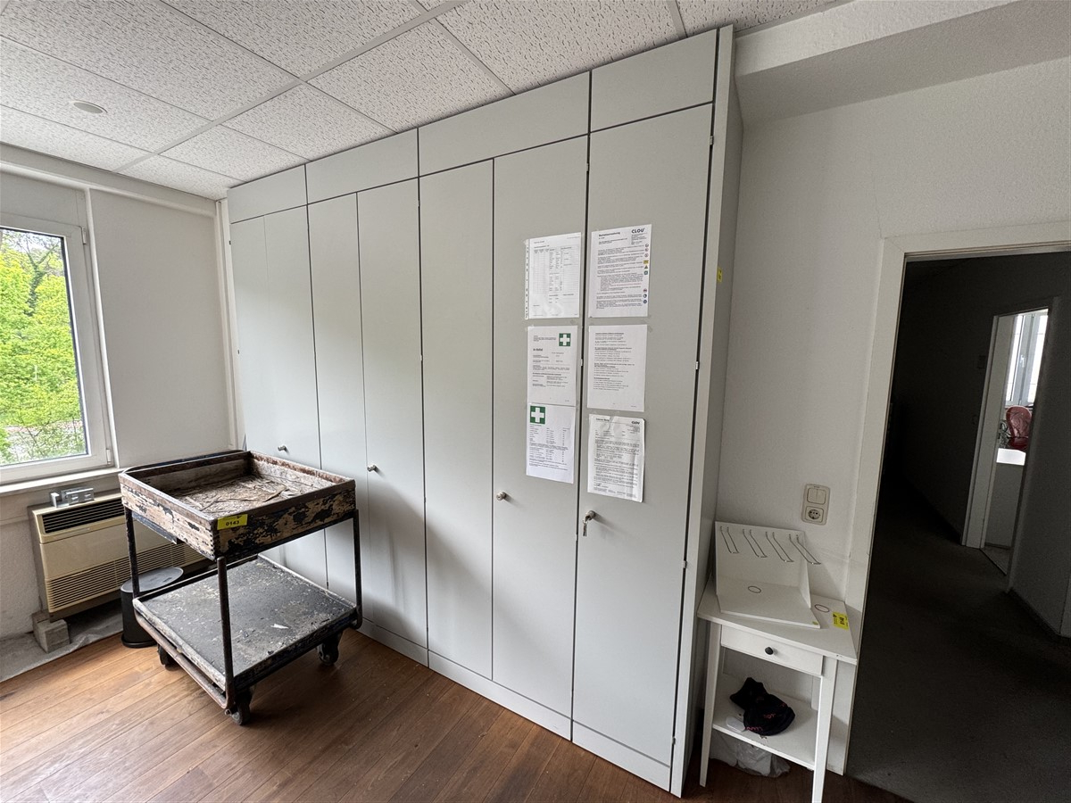 1 Einbauschrank, 3 Felder, mit Doppelflügeltüren und 1 Einzelfeld, schmal, ohne Doppeltür, Farbe: grau