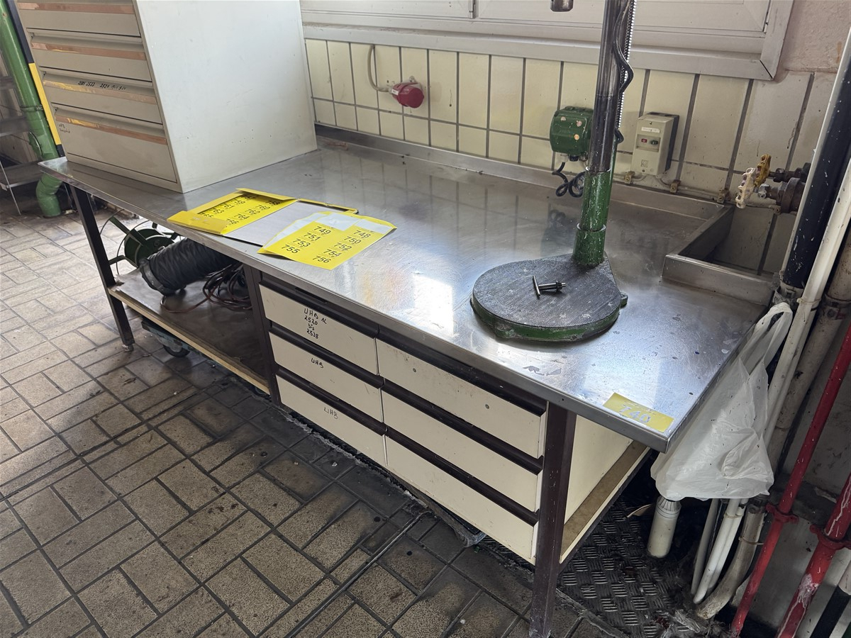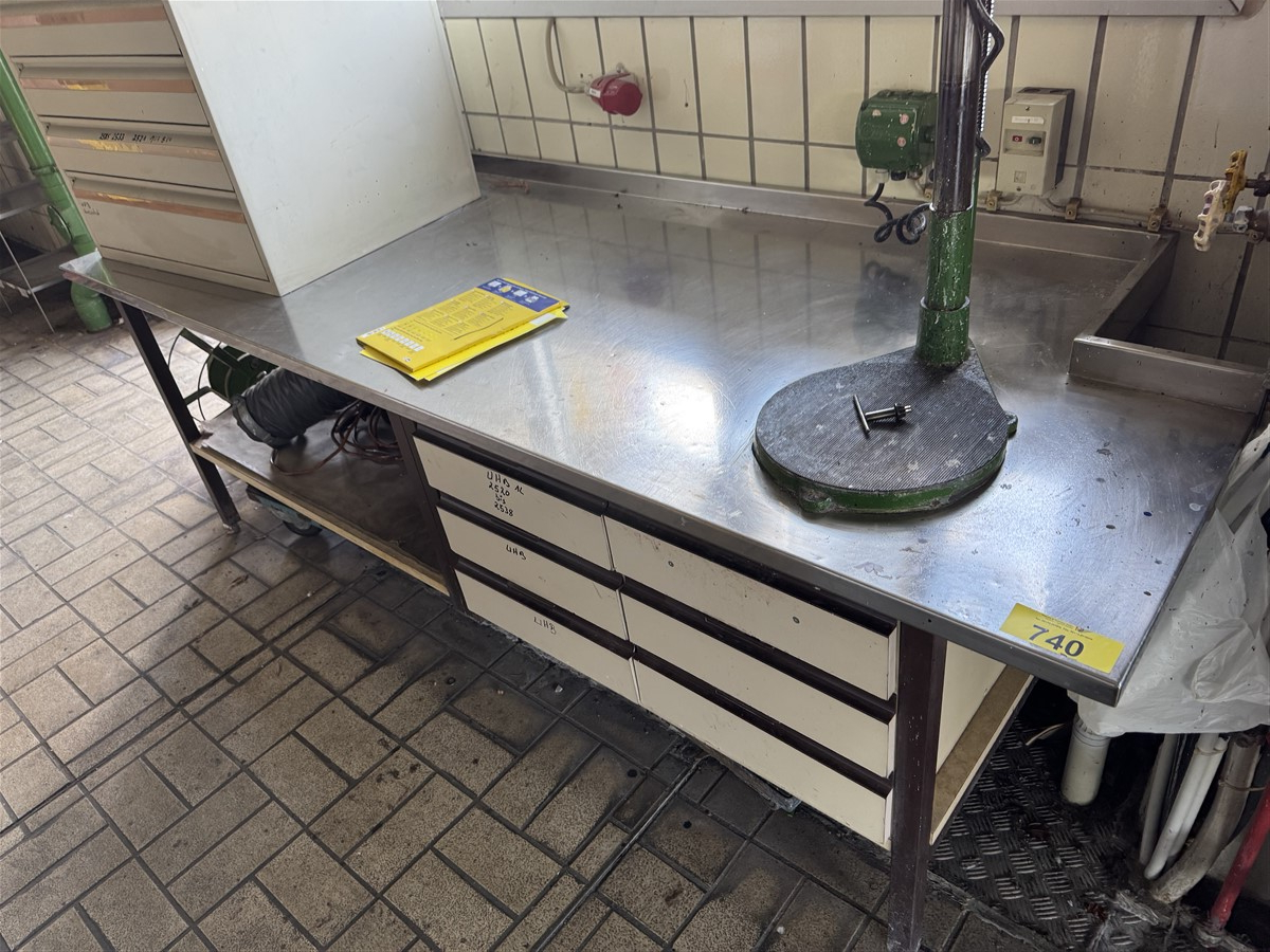 1 Arbeitstisch mit integrierten Container, Edelstahlarbeitsfläche