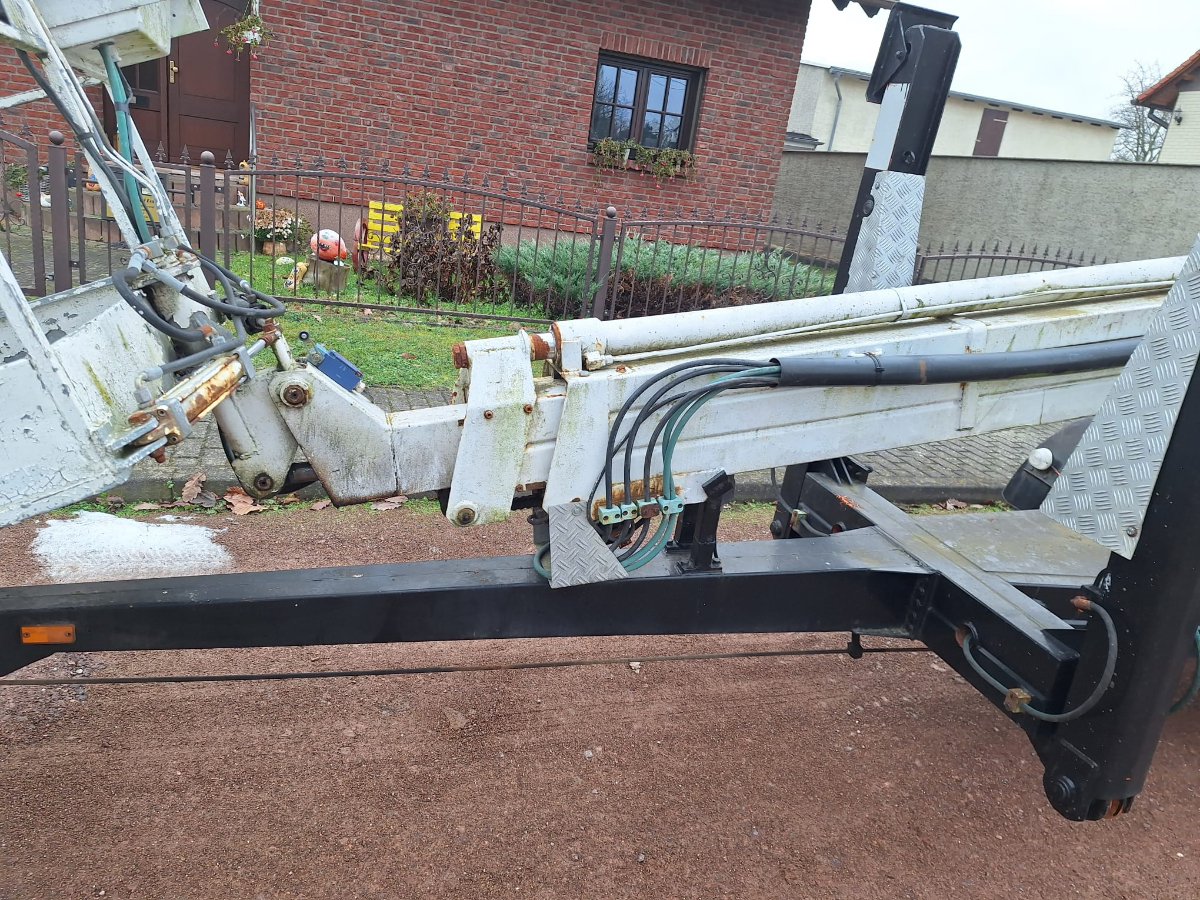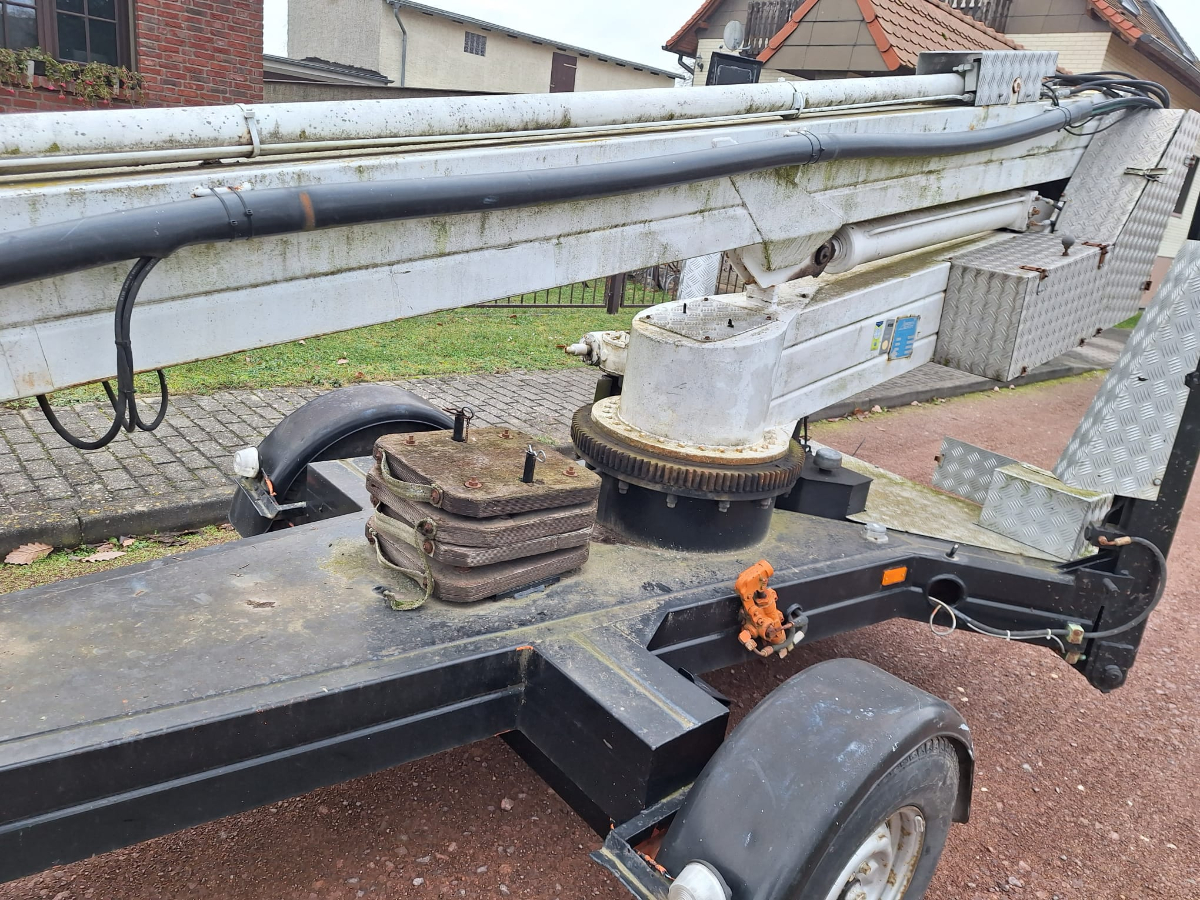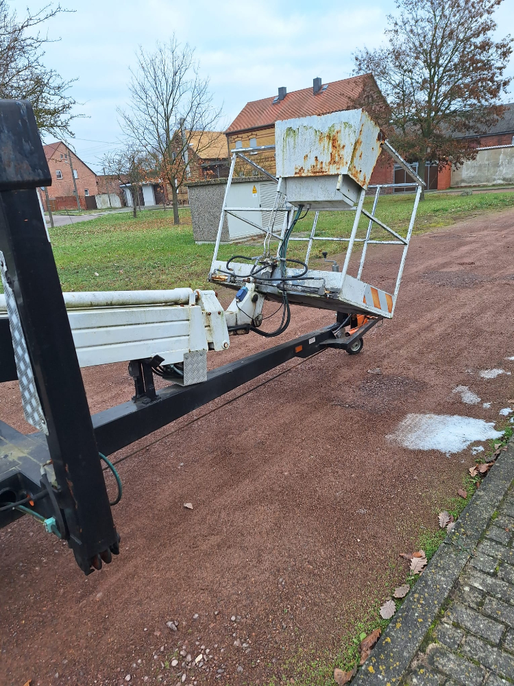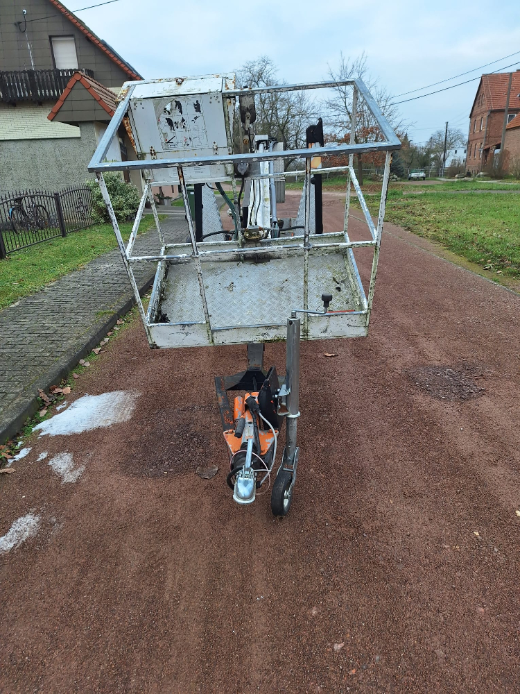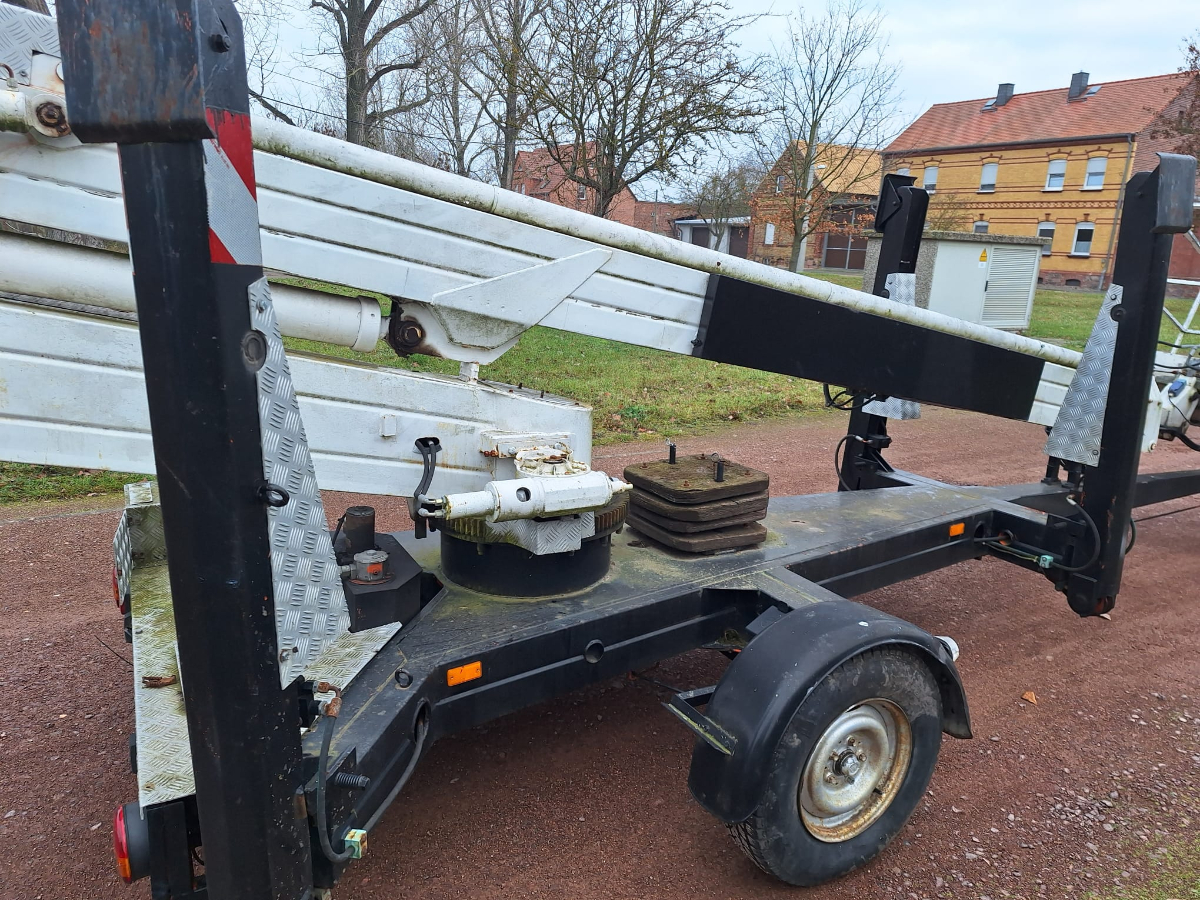 Anhänger Arbeitsmaschine Steigleiter (Hubsteiger), Fabr. Bronto Skylift, Typ 16-1T1, Baujahr 1990, Erstzulassung: 05.02.1991, Ident-Nr. 2960018, Betriebsstunden ca. 1.472 h, Zulässige Gesamtmasse: 1.600 kg, Zustand: Hydraulik an zwei Stellen undicht, Hydraulikschläuche korrodiert und verschlissen, Steuerventil undicht, Notstromaggregat unterdimensioniert