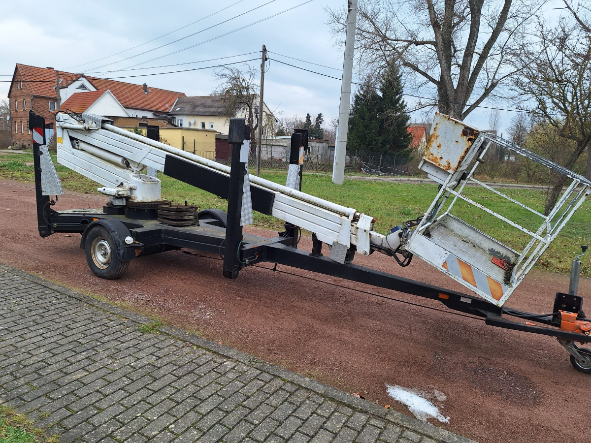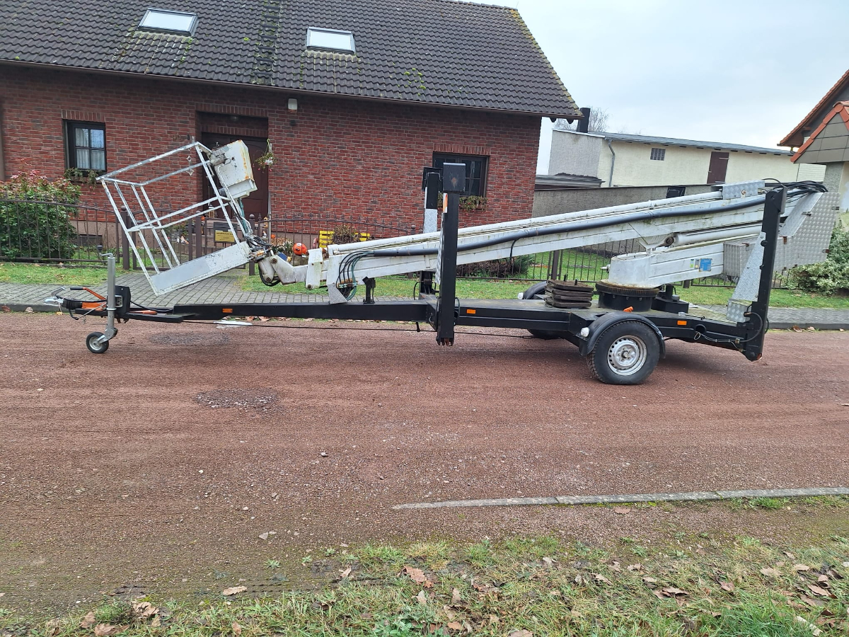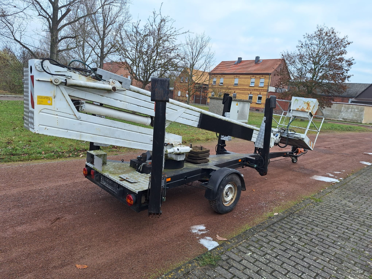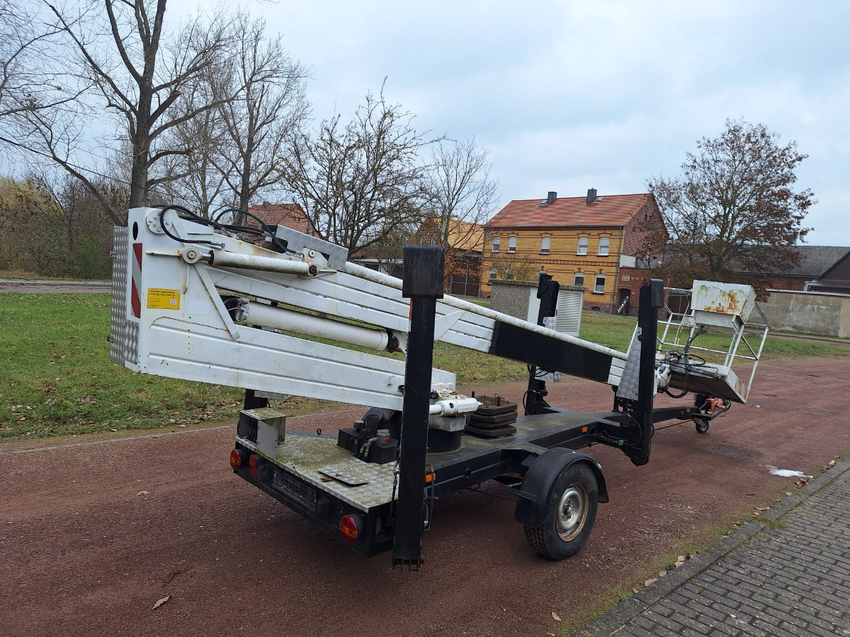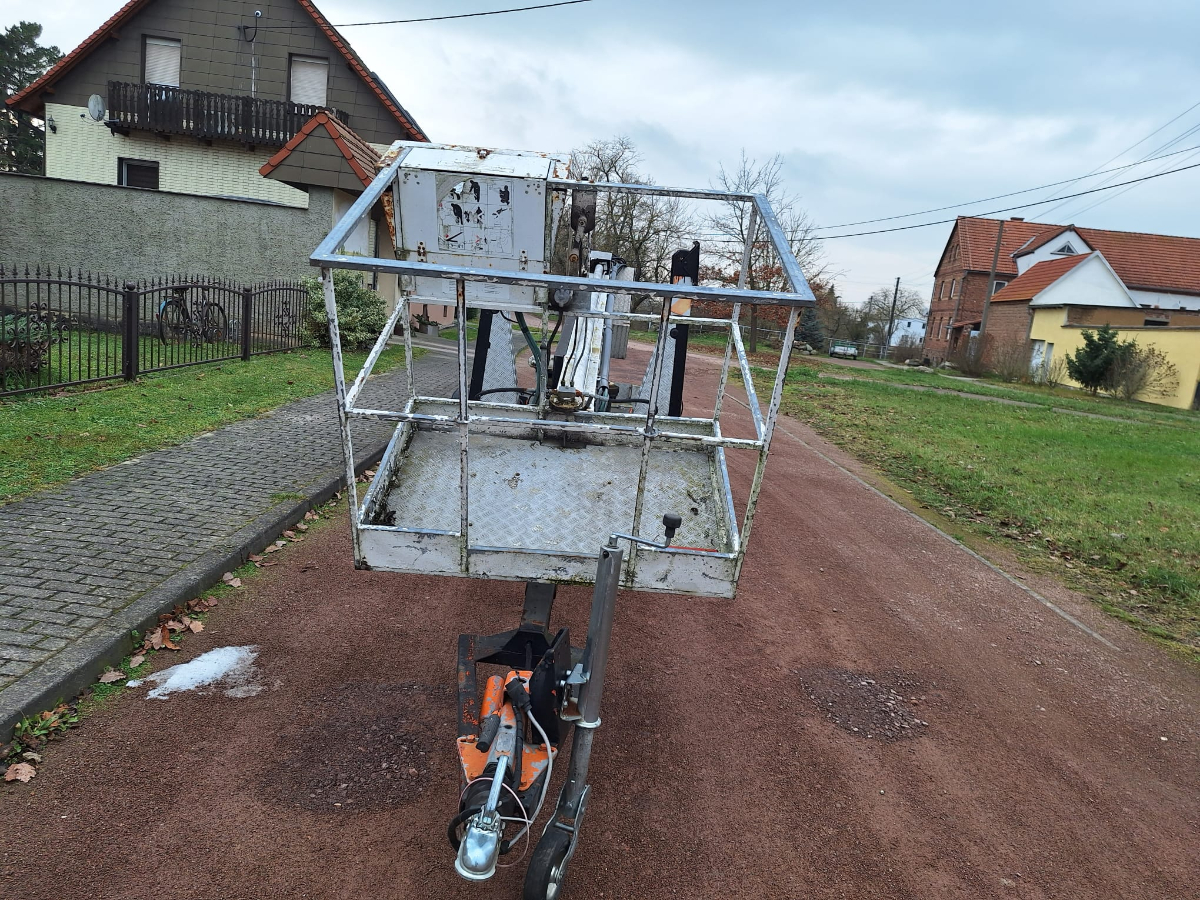 Anhänger Arbeitsmaschine Steigleiter (Hubsteiger), Fabr. Bronto Skylift, Typ 16-1T1, Baujahr 1990, Erstzulassung: 05.02.1991, Ident-Nr. 2960018, Betriebsstunden ca. 1.472 h, Zulässige Gesamtmasse: 1.600 kg, Zustand: Hydraulik an zwei Stellen undicht, Hydraulikschläuche korrodiert und verschlissen, Steuerventil undicht, Notstromaggregat unterdimensioniert
