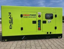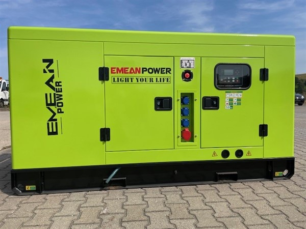 1 Generator Stromerzeuger Notstromaggregat, Fabr. Emean, Typ: DAGFS 35, 30 KW, 50 HZ, 400 Volt, 3 Phasen, 4 Zylinder wassergekühlt, IP23, Baujahr 2023, jeweils 3 x 16 Ampere, Dose (blau), und 1x 32 Ampere, Dose (rot), Maße: 2,12 m x 0,85 m x 1,20 m, Gewicht: ca. 800 kg, Spannung: 400/230 Volt, 50 Hz, 230 Volt, 50 Hz, Kraftstoffverbrauch bei bei 75% Auslastung: ca. 8,2 Liter/h, Antriebsmotor 4-Zylinder Diesel-Reihenmotor RICARDO, Tankinhalt: 72 Liter, einfache und kompakte Bauweise mit schallgedämmter Metallumhausung, Gabelzinken-Einfahrtaschen für den einfachen und sicheren Staplertransport, 3 x CEE-16 Amp. Steckdose (3-polig, 230 Volt), 1 x CEE Steckdose (5-polig, 400 Volt), Klemmen für Kabel-Stromanschluß für externe Verbraucher, z. B. Baustromverteiler