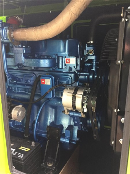 1 Generator, Fabr. WF HUAZHONG, Typ: HZ100GF, 100 KW, Größe: 2,80 x 1,10 x 1,50 m, Gewicht: 1.380 kg, 6 Zylinder, wassergekühlter Diesel-Motor, Motor-Typ :R6105AZLD, jeweils 1 x 16 Ampere, Dose (blau), und 3 x 32 Ampere, Dose (rot)