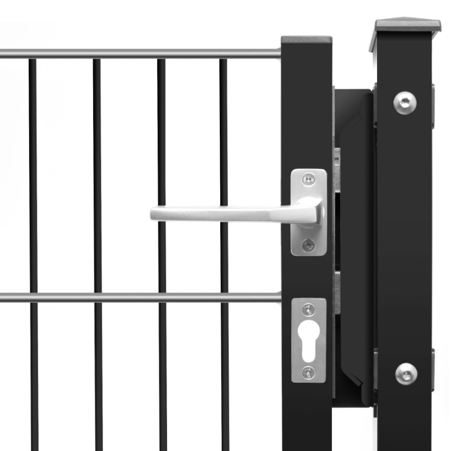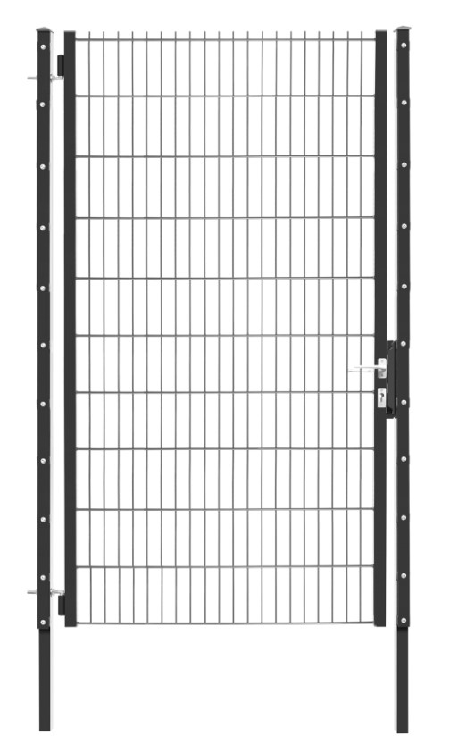 1 Toranlage, Breite: 1.250 mm, Höhe: 2.000 mm, Lichtes Maß: ca. 1.000 mm (920 mm Blatt + 80 mm Spalte), bestehend aus 1 x Torflügel und 2 x Torpfosten 60 x 40 mm zum Einbetonieren, sowie 2 x Zaunanschlüsse - Das Torblatt wurde aus einer Drahtgittermatte 8/6/8 geschweißt und ist nach DIN EN 1461 im Tauchbad feuerverzinkt. Es verfügt über eine verstellbare Scharnieraufhängung und einen Metall-Schlosskasten, verstellbar für DIN R oder DIN L vorbereitet für einen Profilzylinder 30/30 sowie eine Aluminium-Garnitur. Lieferung inklusive Zubehör,Schrauben etc.