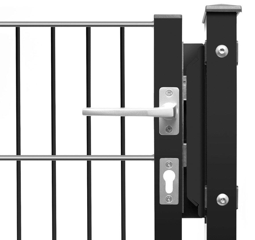 1 Toranlage, Breite: 3.000 mm, Höhe: 1.800 mm, Lichtes Maß: ca. 2.970 mm (2 x 1.425 mm Blatt + 120 mm Spalte), bestehend aus 2 x Torflügel und 2 x Torpfosten 60 x 60 mm zum Einbetonieren, sowie 2 x Zaunanschlüsse - Das Torblatt wurde aus einer Drahtgittermatte 8/6/8 geschweißt und ist nach DIN EN 1461 im Tauchbad feuerverzinkt. Es verfügt über eine verstellbare Scharnieraufhängung und einen Metall-Schlosskasten, verstellbar für DIN R oder DIN L vorbereitet für einen Profilzylinder 30/30 sowie eine Aluminium-Garnitur. Lieferung inklusive Zubehör,Schrauben etc.