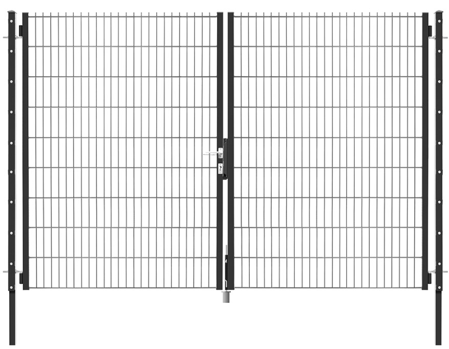 1 Toranlage, Breite: 3.000 mm, Höhe: 1.800 mm, Lichtes Maß: ca. 2.970 mm (2 x 1.425 mm Blatt + 120 mm Spalte), bestehend aus 2 x Torflügel und 2 x Torpfosten 60 x 60 mm zum Einbetonieren, sowie 2 x Zaunanschlüsse - Das Torblatt wurde aus einer Drahtgittermatte 8/6/8 geschweißt und ist nach DIN EN 1461 im Tauchbad feuerverzinkt. Es verfügt über eine verstellbare Scharnieraufhängung und einen Metall-Schlosskasten, verstellbar für DIN R oder DIN L vorbereitet für einen Profilzylinder 30/30 sowie eine Aluminium-Garnitur. Lieferung inklusive Zubehör,Schrauben etc.
