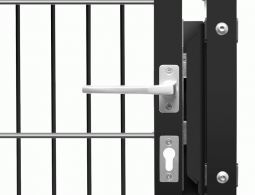 1 Toranlage, Breite: 3.000 mm, Höhe: 1.800 mm, Lichtes Maß: ca. 2.970 mm (2 x 1.425 mm Blatt + 120 mm Spalte), bestehend aus 2 x Torflügel und 2 x Torpfosten 60 x 60 mm zum Einbetonieren, sowie 2 x Zaunanschlüsse - Das Torblatt wurde aus einer Drahtgittermatte 8/6/8 geschweißt und ist nach DIN EN 1461 im Tauchbad feuerverzinkt. Es verfügt über eine verstellbare Scharnieraufhängung und einen Metall-Schlosskasten, verstellbar für DIN R oder DIN L vorbereitet für einen Profilzylinder 30/30 sowie eine Aluminium-Garnitur. Lieferung inklusive Zubehör,Schrauben etc.