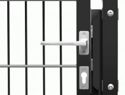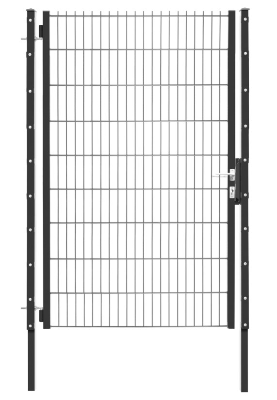 1 Toranlage, Breite: 1.250 mm, Höhe: 1.800 mm, Lichtes Maß: ca. 1.000 mm (920 mm Blatt + 80 mm Spalte), bestehend aus 1 x Torflügel und 2 x Torpfosten 60 x 40 mm zum Einbetonieren, sowie 2 x Zaunanschlüsse - Das Torblatt wurde aus einer Drahtgittermatte 8/6/8 geschweißt und ist nach DIN EN 1461 im Tauchbad feuerverzinkt. Es verfügt über eine verstellbare Scharnieraufhängung und einen Metall-Schlosskasten, verstellbar für DIN R oder DIN L vorbereitet für einen Profilzylinder 30/30 sowie eine Aluminium-Garnitur. Lieferung inklusive Zubehör,Schrauben etc.