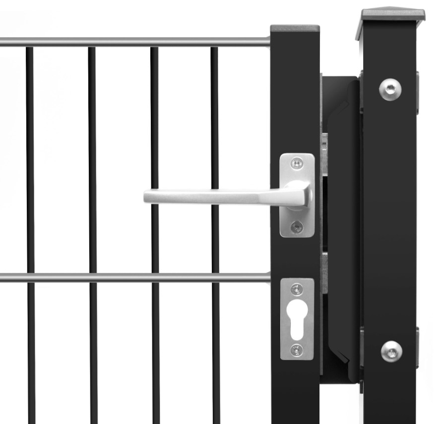 1 Toranlage, Breite: 1.250 mm, Höhe: 1.800 mm, Lichtes Maß: ca. 1.000 mm (920 mm Blatt + 80 mm Spalte), bestehend aus 1 x Torflügel und 2 x Torpfosten 60 x 40 mm zum Einbetonieren, sowie 2 x Zaunanschlüsse - Das Torblatt wurde aus einer Drahtgittermatte 8/6/8 geschweißt und ist nach DIN EN 1461 im Tauchbad feuerverzinkt. Es verfügt über eine verstellbare Scharnieraufhängung und einen Metall-Schlosskasten, verstellbar für DIN R oder DIN L vorbereitet für einen Profilzylinder 30/30 sowie eine Aluminium-Garnitur. Lieferung inklusive Zubehör,Schrauben etc.