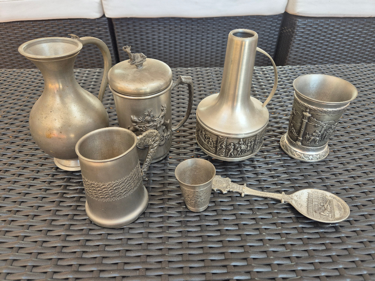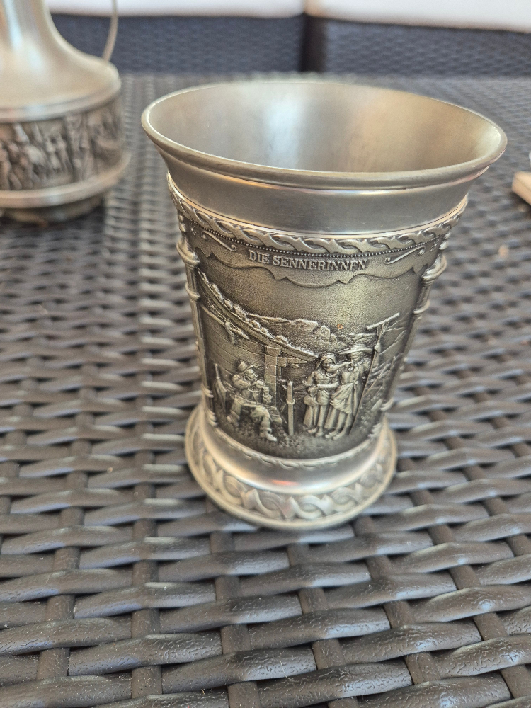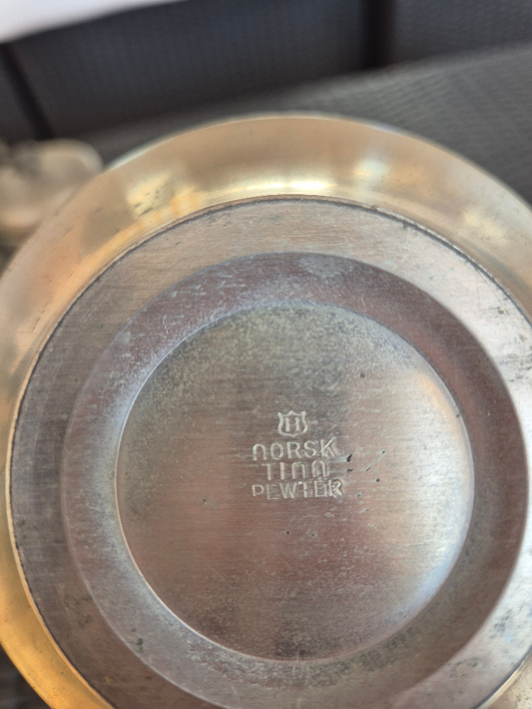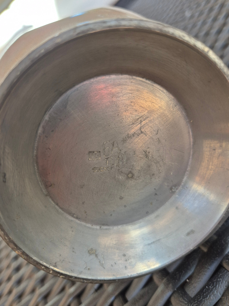 1 Zinn Geschirr: Typ: GAB Model: Kanne tenn svensk. Typ: WMF Model: Jahreslöffel 1990 Schloss Herrenchiemsee limitiert. Typ: Artina Model: Becher/Krug mit Design 95% Zinn. Typ: Astri Holthe Model: Kanne mit Design Norsk Tinn Pewter. Model: Krug mit Deckel Reh Design. Model: Bierkrug Pokaler Premier Smien Handgiavering Kirkegt 3 Stavanger. Model: Schapsglas Norwegian Pewter Handmade Troll tinn
