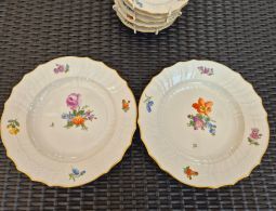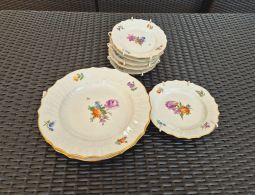 1 Typ: Royal Copenhagen, Model: 1x Zierteller groß Blumen Design, 5x Zierteller klein Blumen Design, 2x Teller Blume Design Goldrand