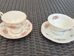 1 Typ: Royal Kent (Bone China) Model: Tasse mit Untertasse (Blumen, Goldrand, Made in England), Typ: Rosenthal Model: Tasse mit Untertasse (Blumen, Gold, Selb-Germany, Sanssouci)