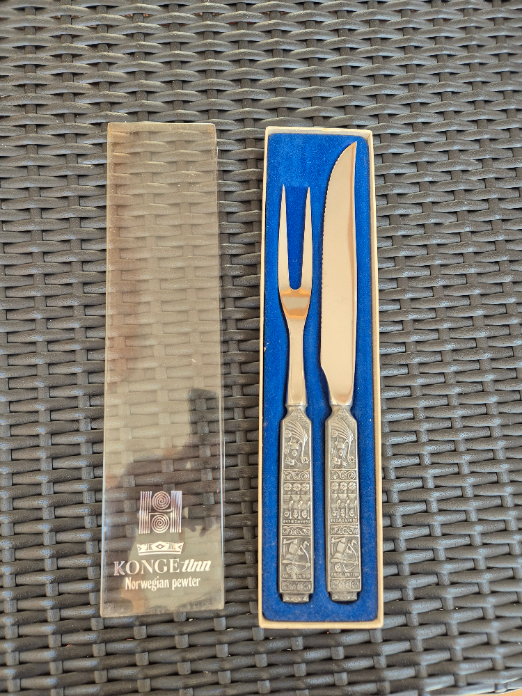 1 Typ: Konge, Model: Tranchier Set, Heilag Olav Zinn, tinn norwegian pewter, OVP