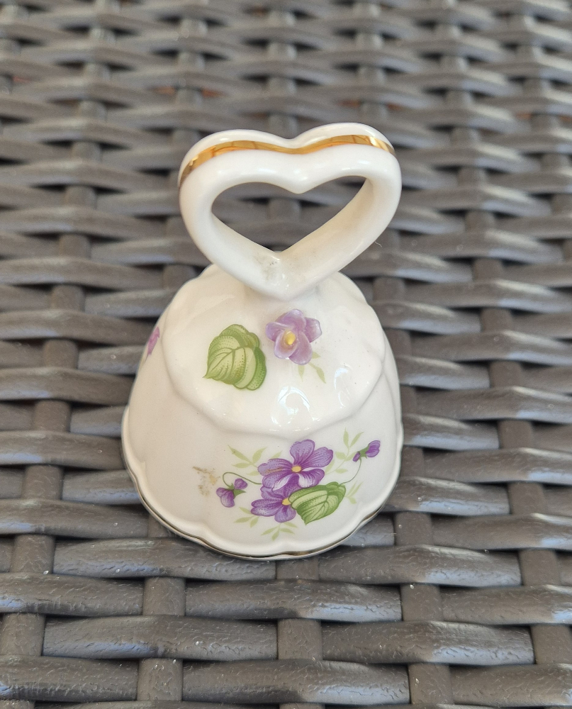 1 Typ: Maruri Masterpiece, Model: Glöckchen, Glocke, Bone China, 1978 Enesco, Blumen, Goldrand, Herz