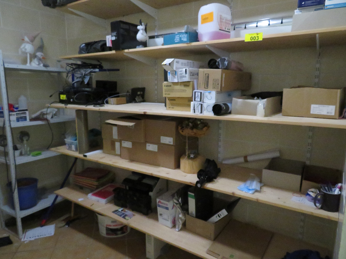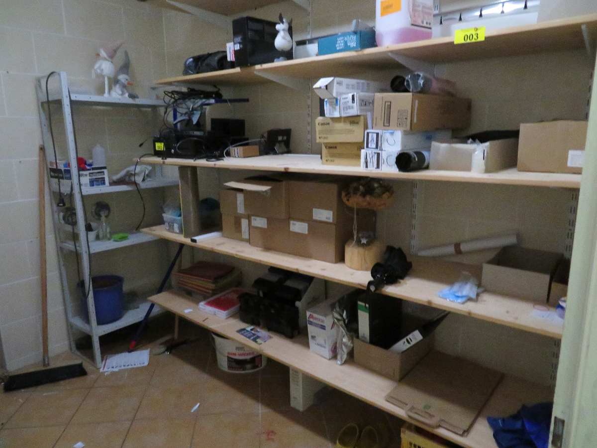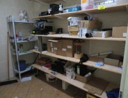 1 Wandregal, Metall weiß, ca. 2,20 m hoch x 2,20 m breit, mit 5 Holz-Einlegeböden