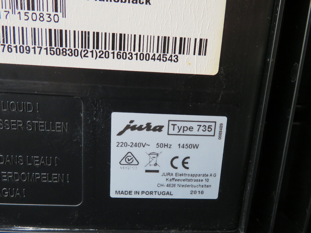 1 Kaffeevollautomat, Fabr. Jura, Typ E 80 (735), Pianoblack, 1.450 W, Baujahr 2016, Abtropfsieb fehlt