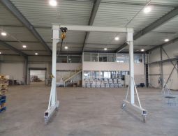 Portalkran/Hebekran, rollbar, mit Kettenzug, Fabr. Lifetech, Typ Chain Block, Hebekraft 2 t
