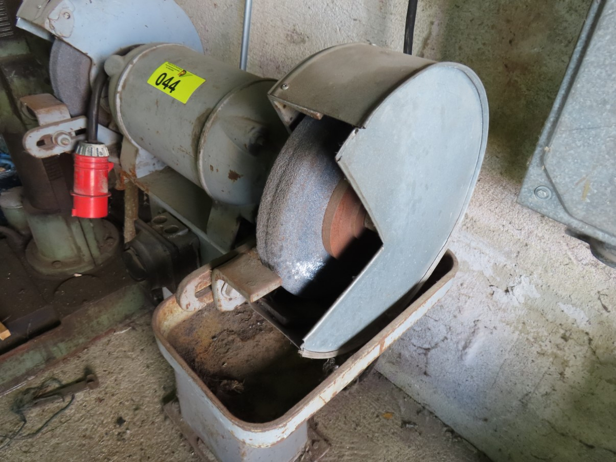 1 Doppelschleifbock, ständermontiert, nähere Daten nicht erkennbar, Schleifscheiben-Ø ca. 250 mm