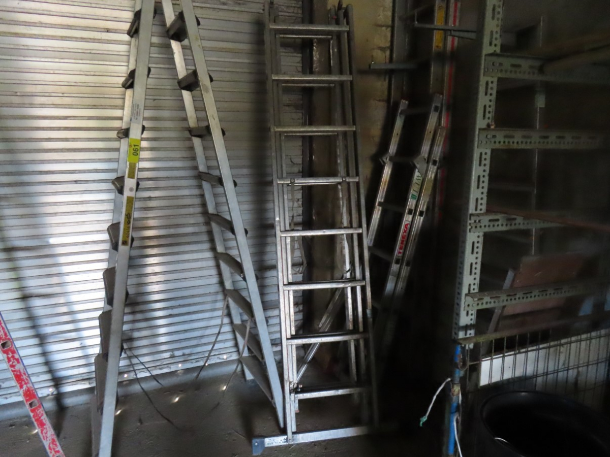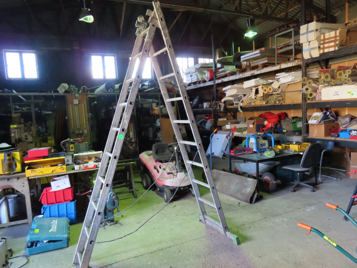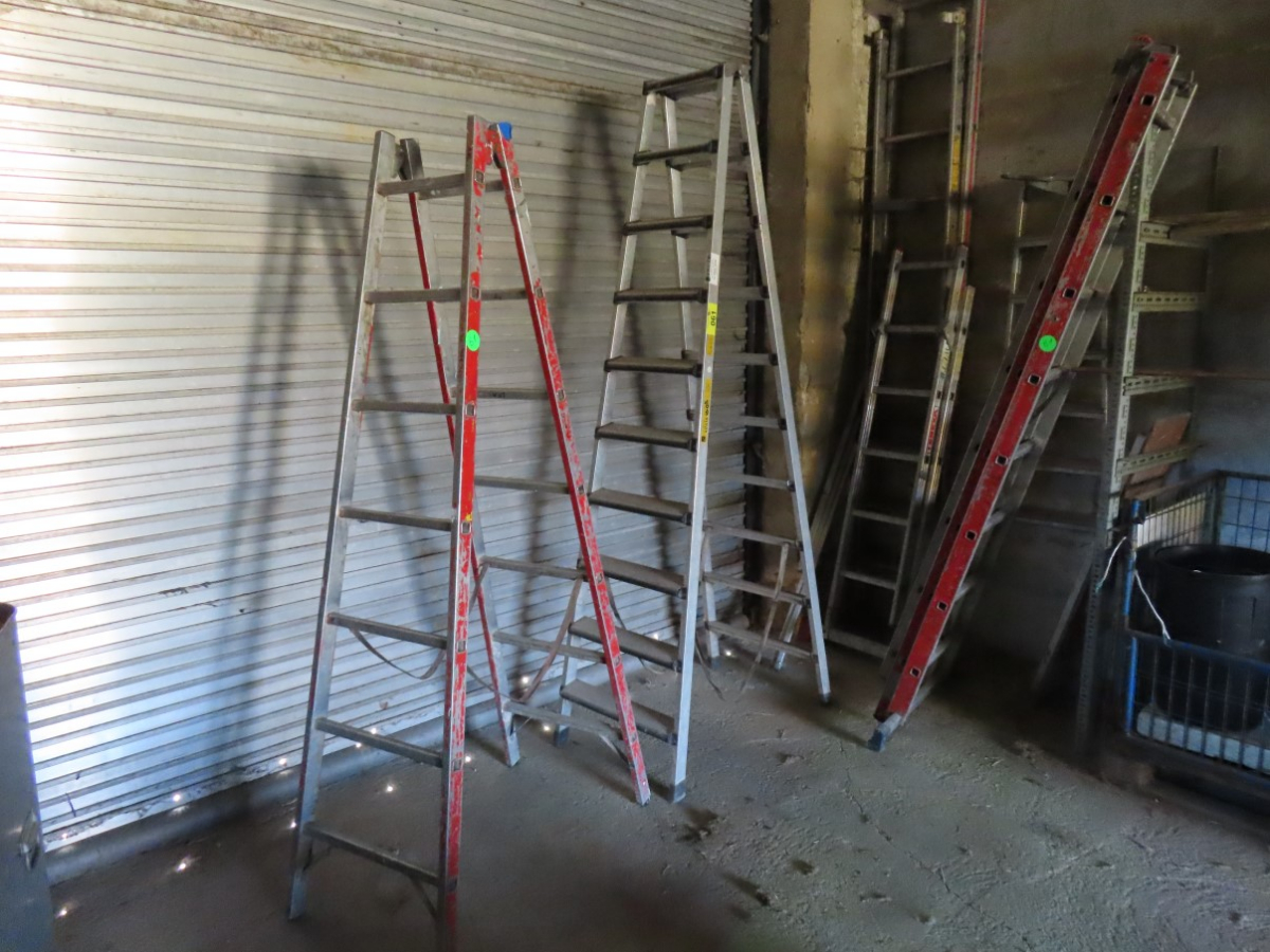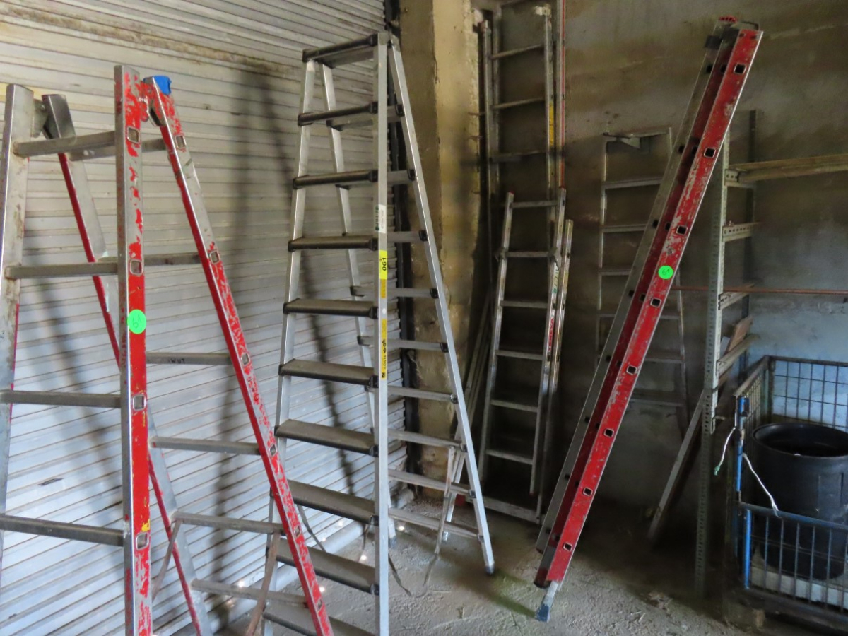 4 Alu-Leitern, 2 x Klappleitern, 10-stufig, 1 Klappleiter, 7-stufig, 1 Auszugsleiter, 3-teilig, 9-stufig