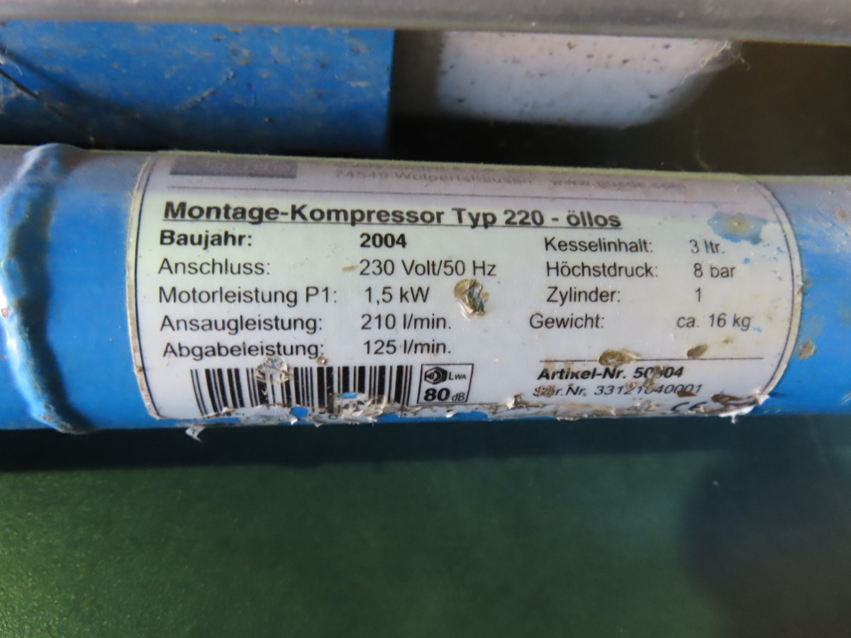 1 Montage-Kompressor, Fabr. Güde, Typ 220, Kesselinhalt 3 Liter, 8 bar, 1,5 kW, Baujahr 2004