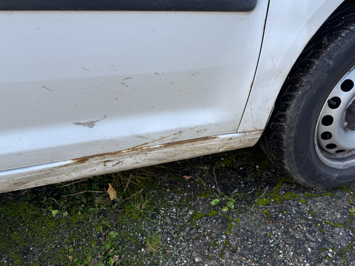 PKW, Fabr. VW, Typ Caddy, Ident-Nr. WV1ZZZ2KZCX143240, Erstzulassung 03.05.2012, 63 kW, Benzin, Euro 5, 1197 cm³, Anhängekupplung, Tacho-Stand: 117.987 km, TÜV bis 05/2026, Beifahrerseite unten Dellen, Kratzer mit Rostanhaftungen, Fahrerseite Tür unten Rostanhaftungen