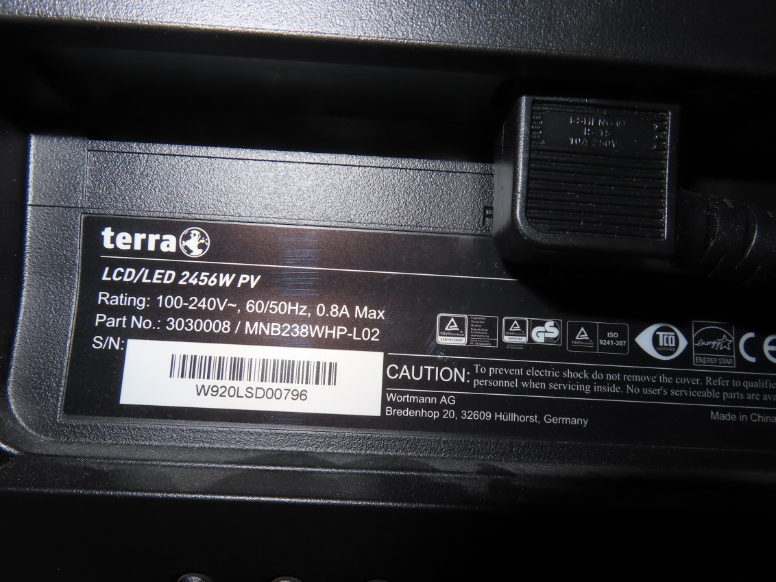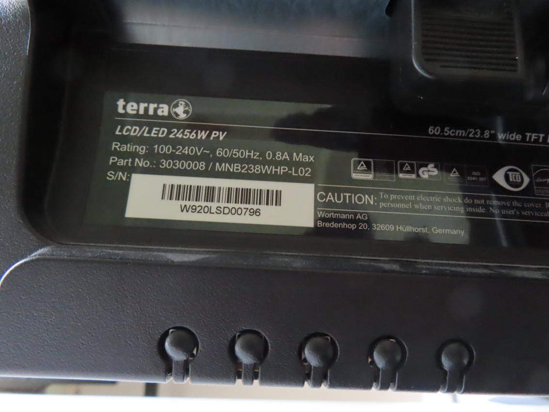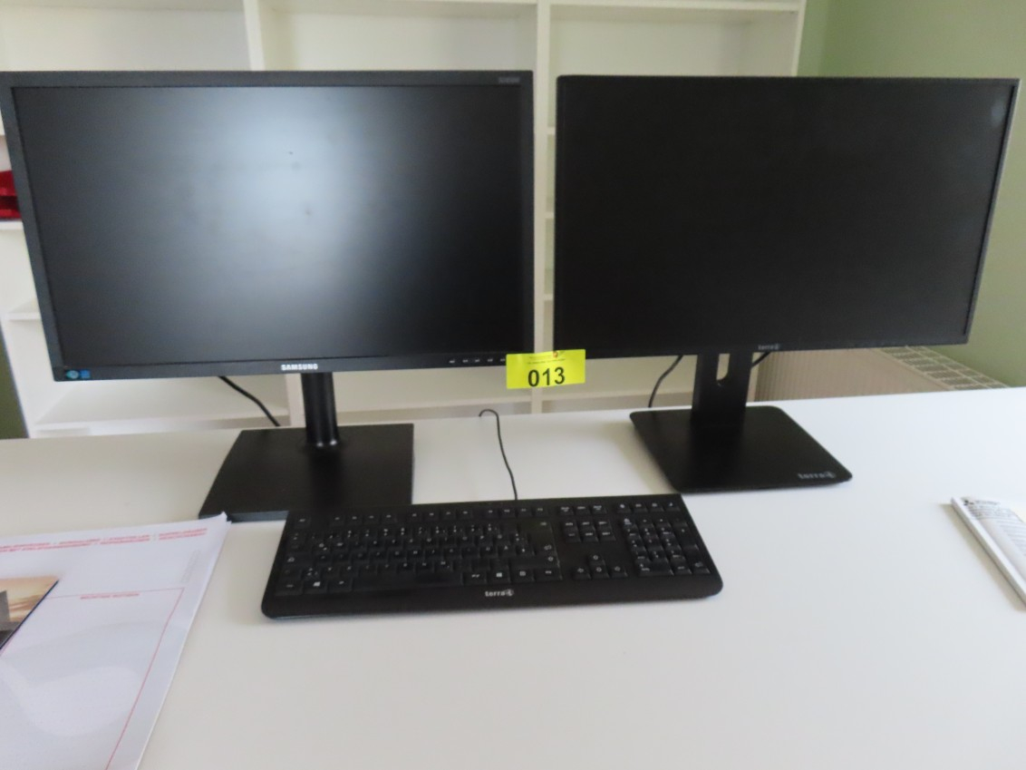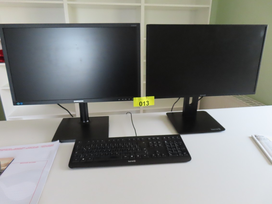 1 24 Zoll-LCD/LED-Bildschirm, Fabr. terra, Typ 2456W PV und 1 24 Zoll LED-Bildschirm, Fabr. Samsung, Typ LS24E65UPLC/EN, Tastatur
