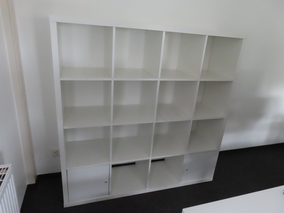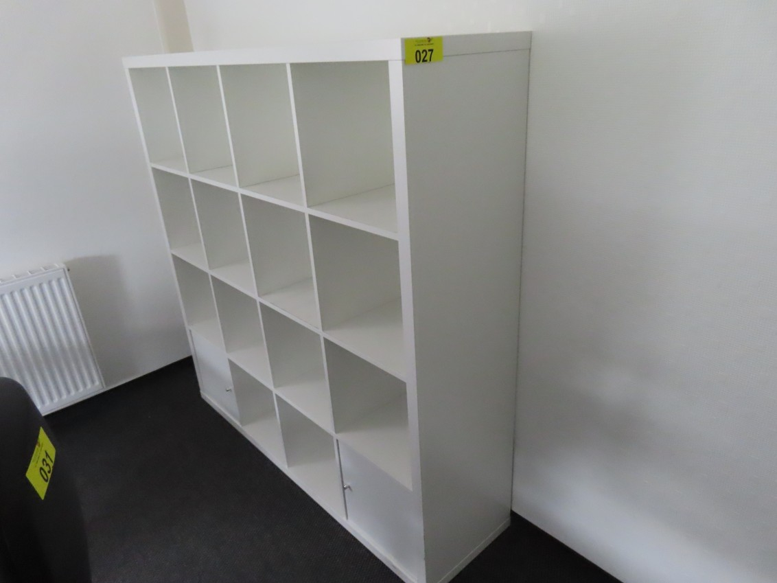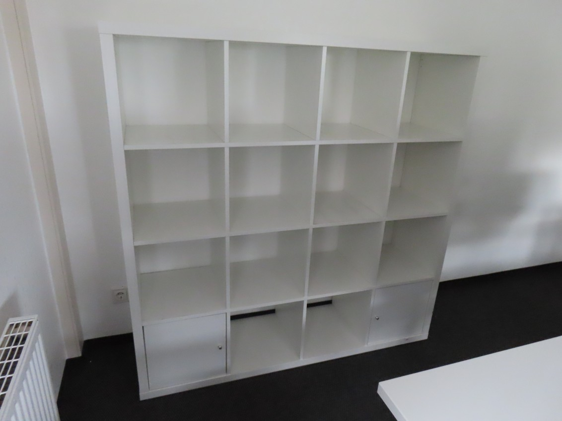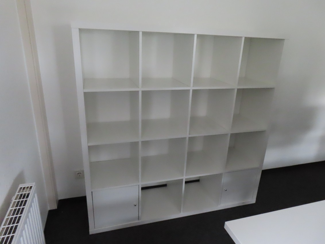 1 Regal, IKEA KALLAX, ca. 1,50 m x 1,50 m, 2 Türen, weiß