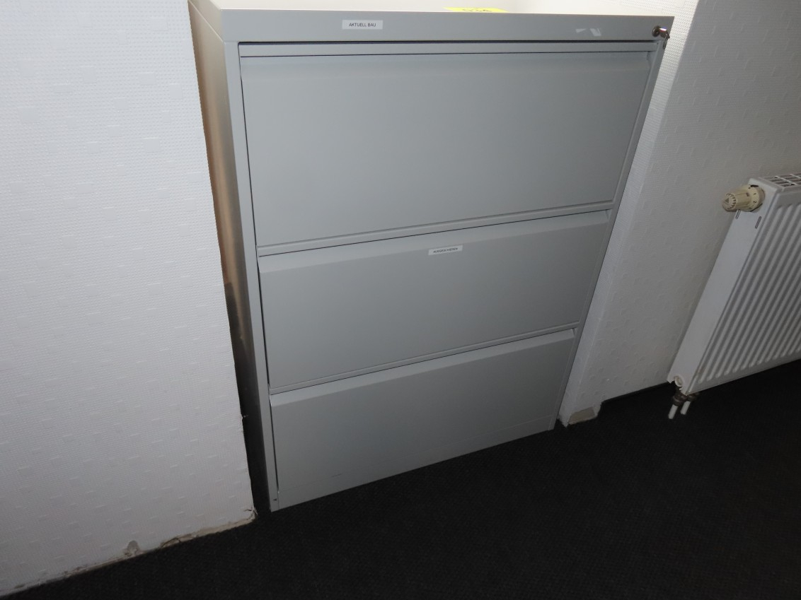 1 Hängeregistraturschrank, Fabr. C+P Möbelsysteme, mit 3 Auszügen, Metall grau