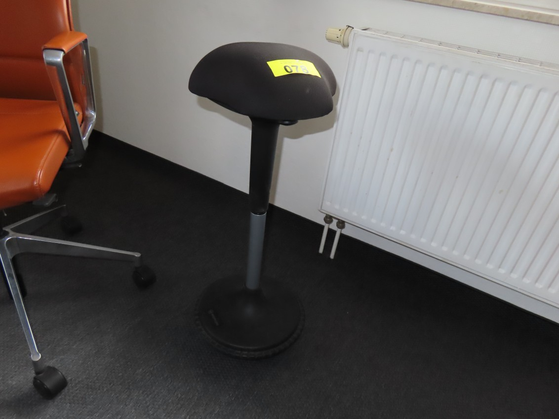 1 Sattelsitzhocker/Stehhilfe mit Bodenwippe, Fabr. Ergotopia, Stoffbezug schwarz