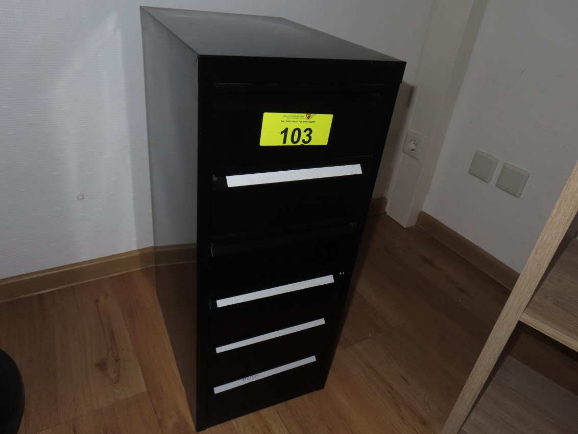 1 Metallschrank mit 6 Auszügen, ca. 0,60 m x 0,20 m, schwarz