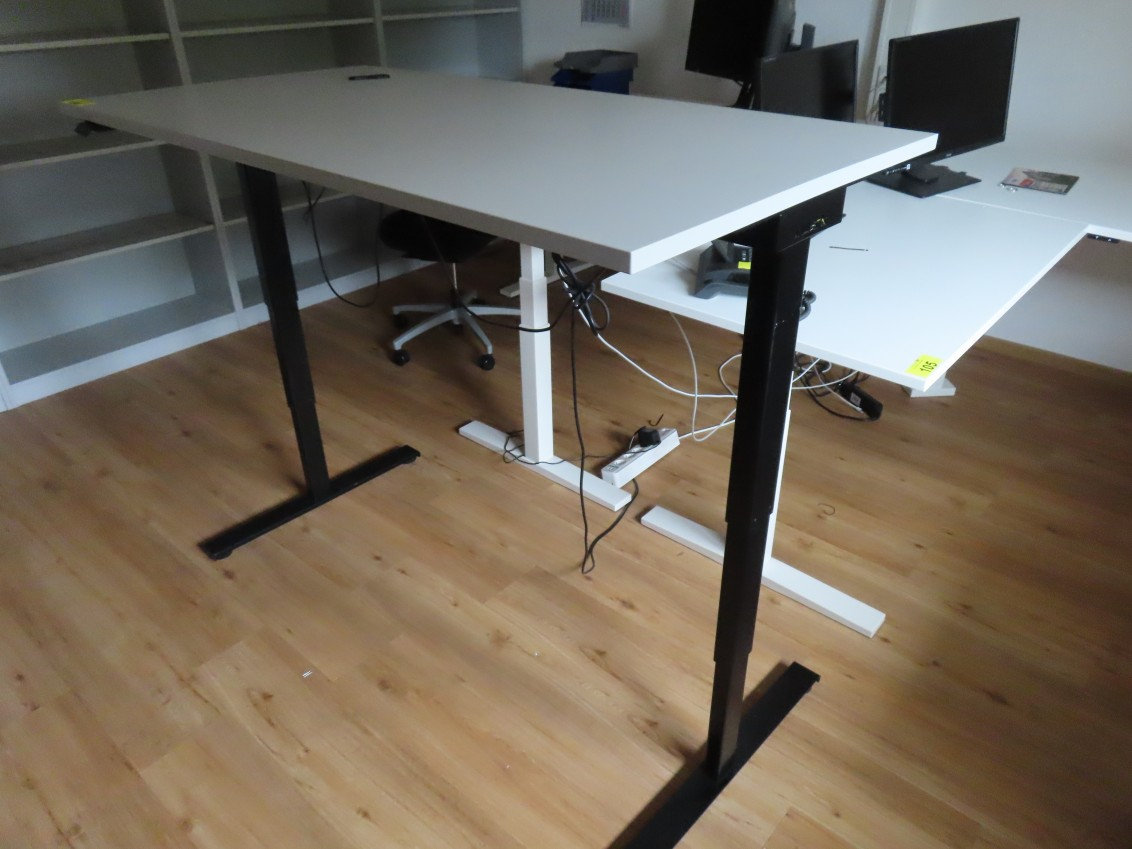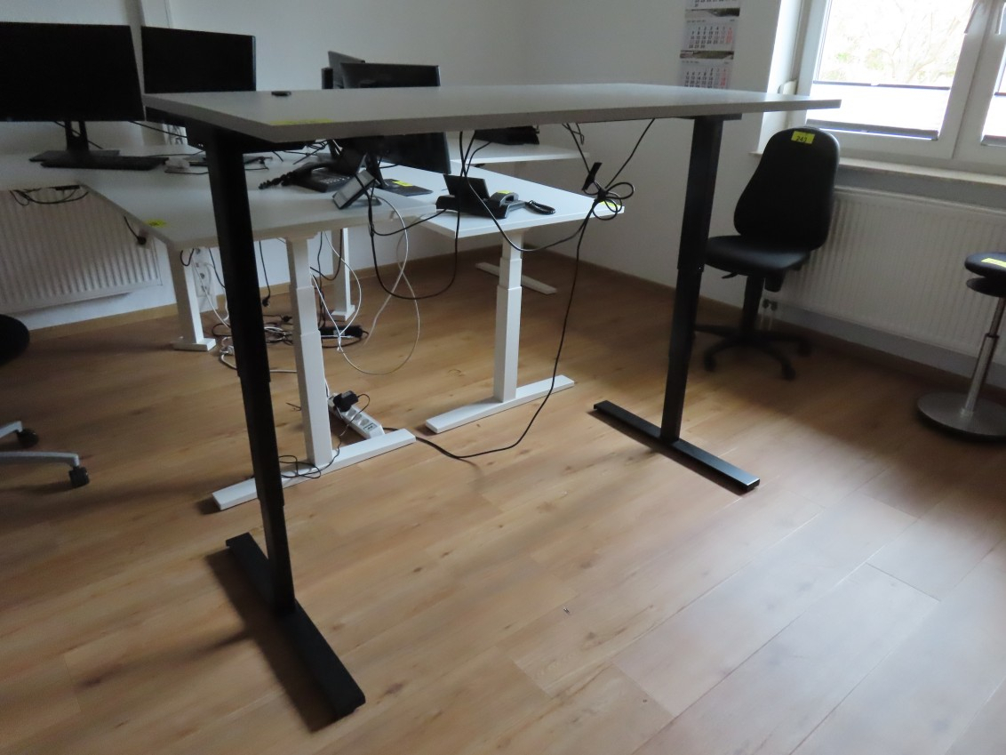 1 Schreibtisch, Fabr. Inwerk, elektrisch höhenverstellbar, Hubsäule, Fabr. LINAK, ca. 0,80 m x 1,60 m, Kunststoff grau