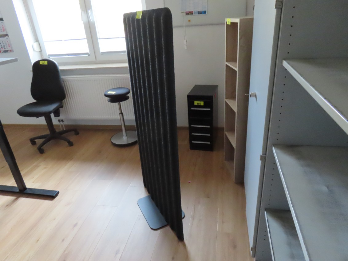 1 Akustikstellwand, ca. 1,60 m x 1 m, grau, mit Ständer