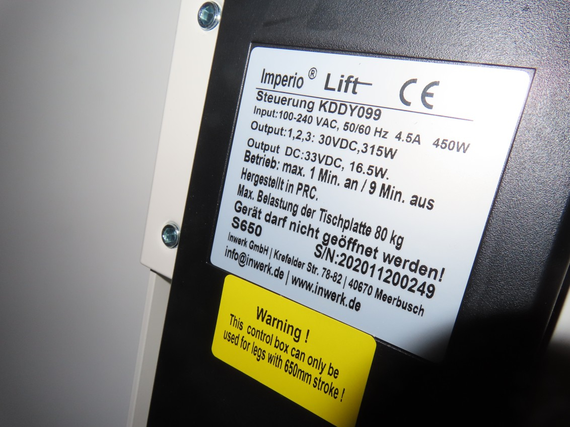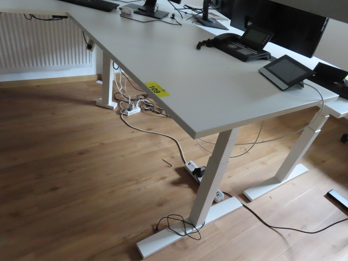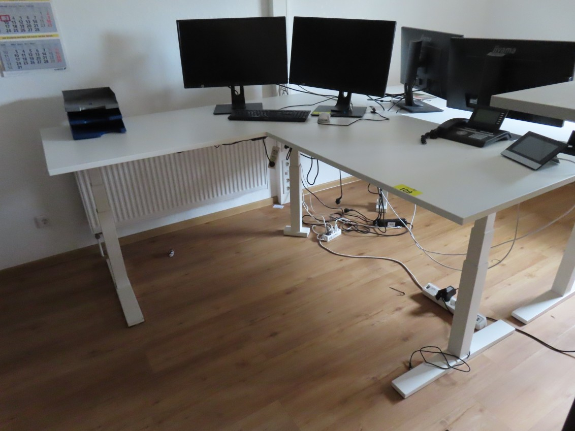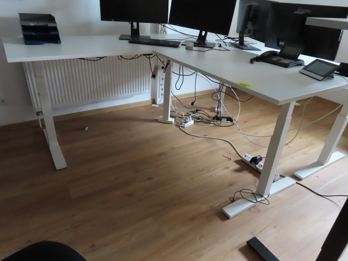 1 Eckschreibtisch, Fabr. Inwerk, elektrisch höhenverstellbar, 2 m x 1 m, Hubsäule, Typ Imperio Lift, Kunststoff weiß
