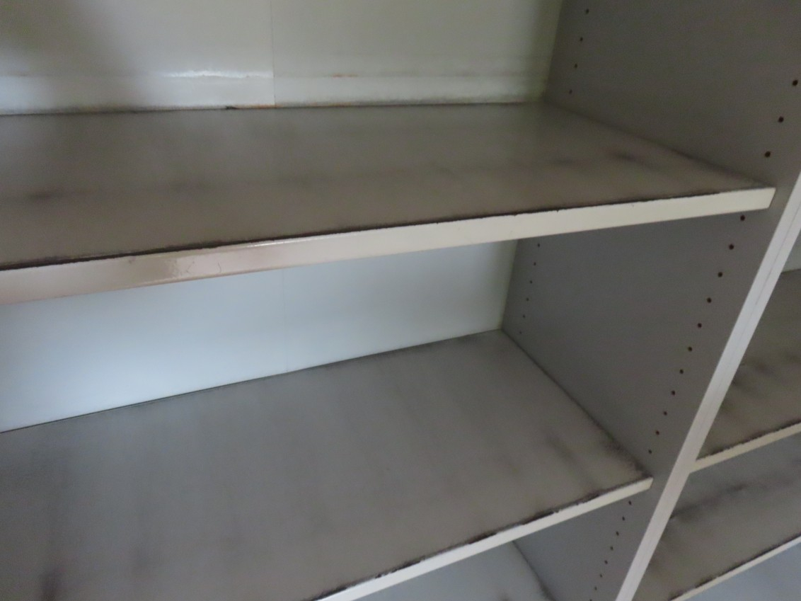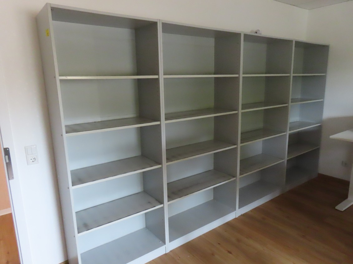 4 Aktenregale, Kunststoff grau, mit Metallböden, durch Ordner verschlissen
