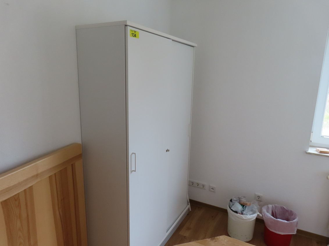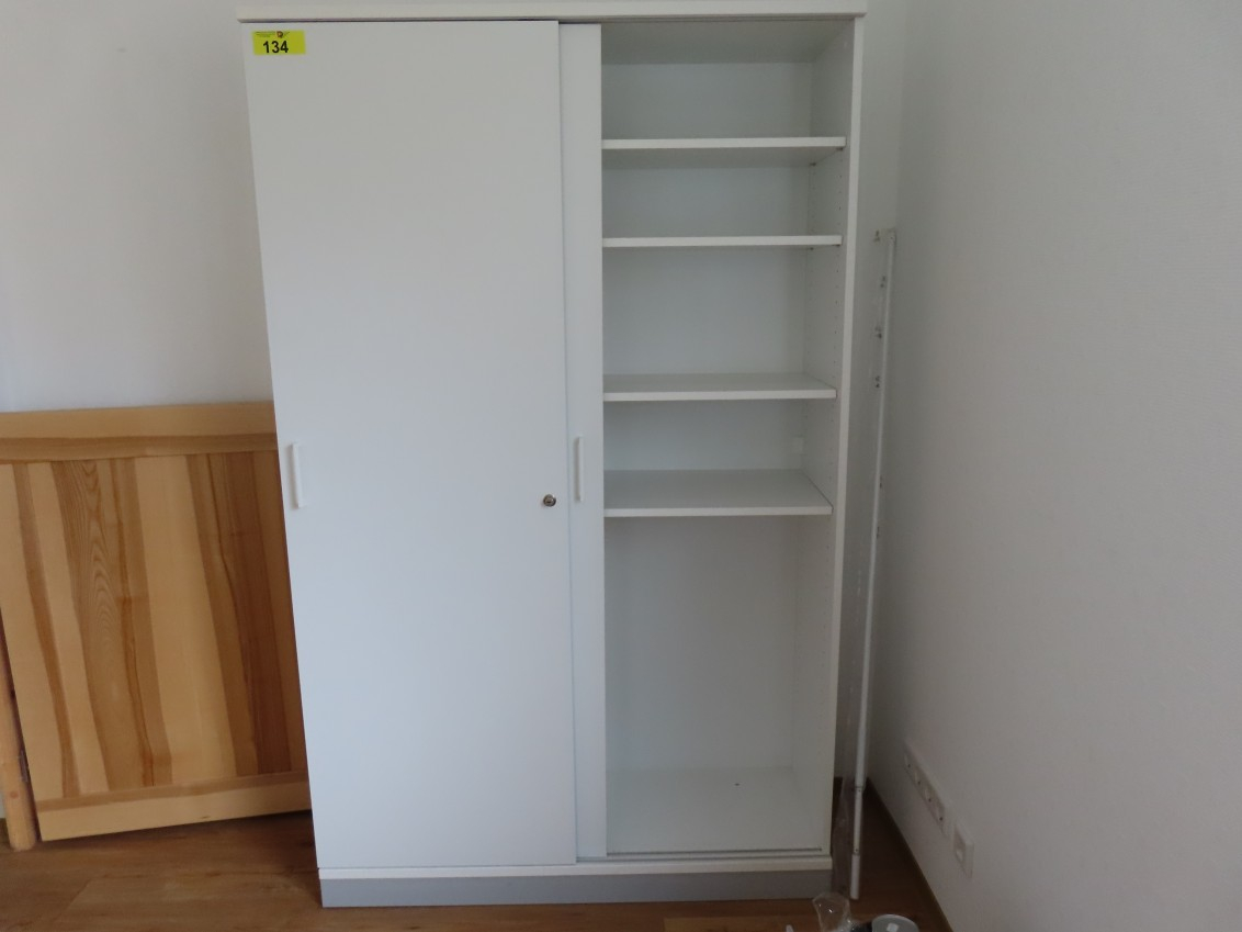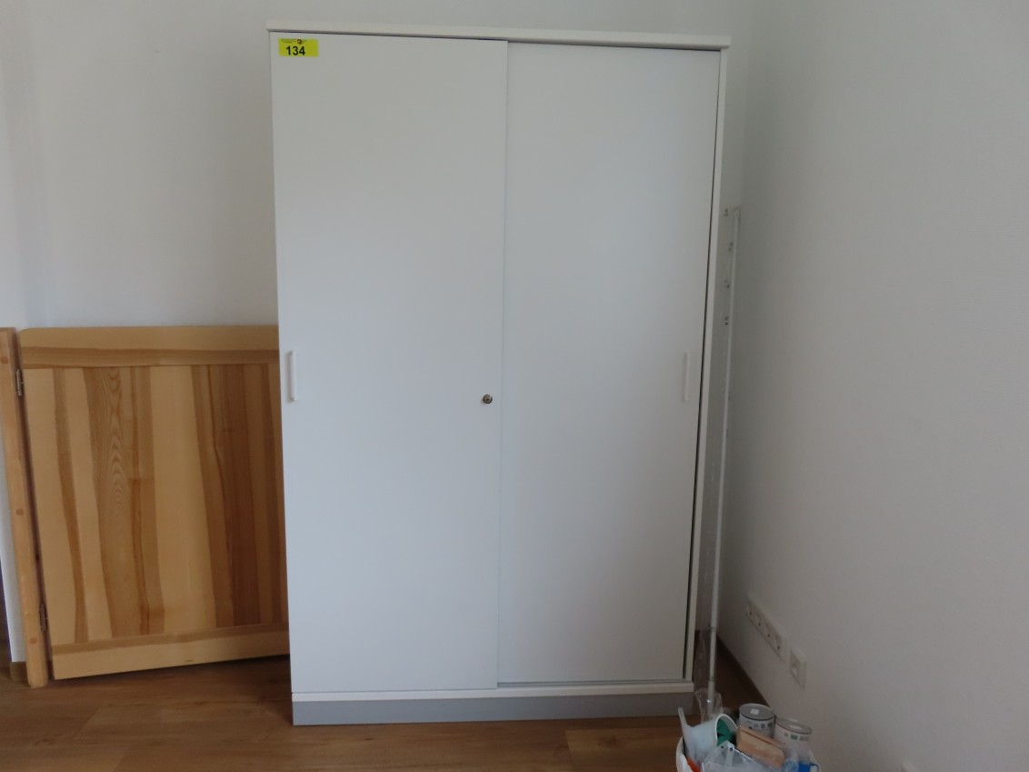 1 Aktenschrank mit Schiebetüren, ca. 1,95 m x 1,20 m, Kunststoff weiß