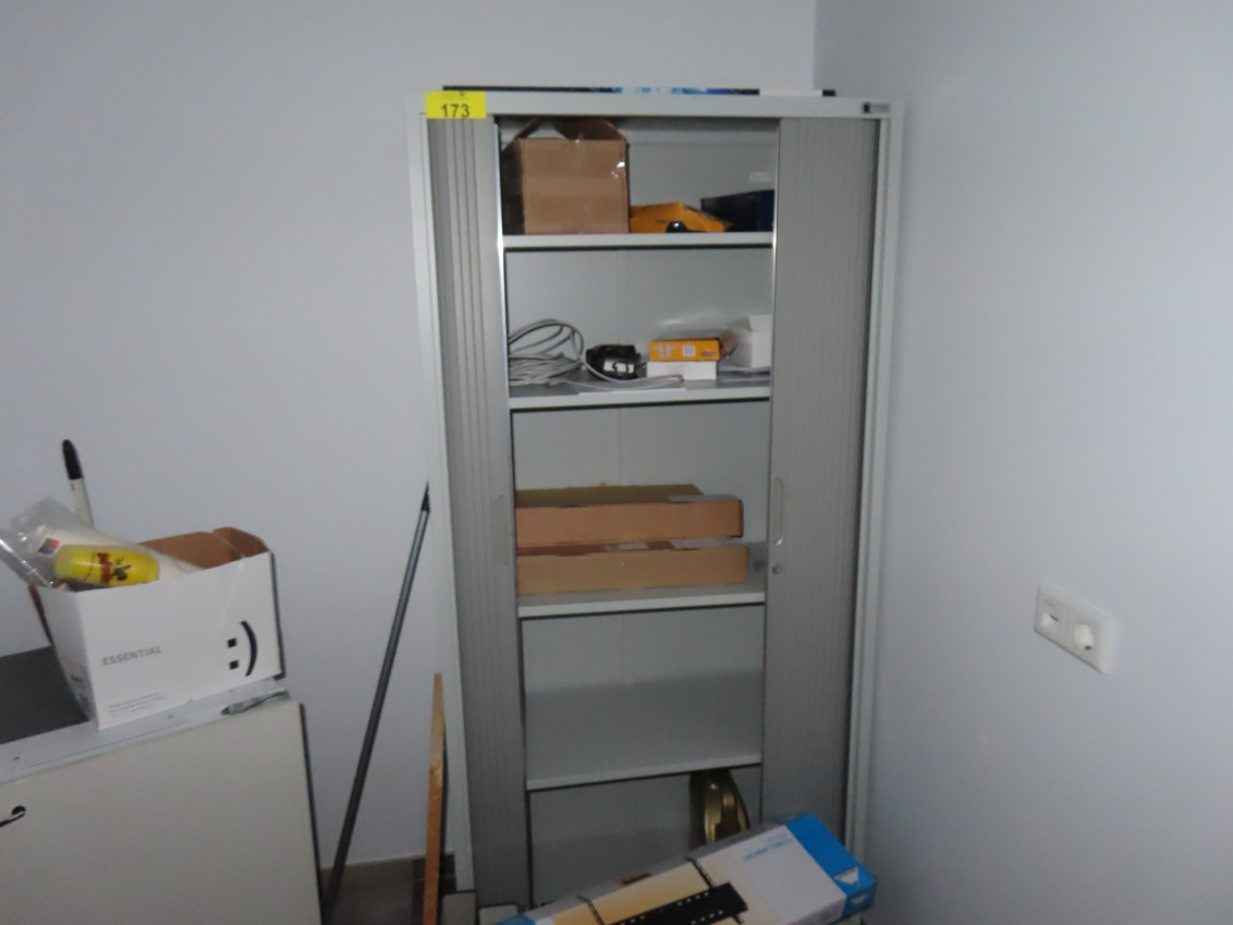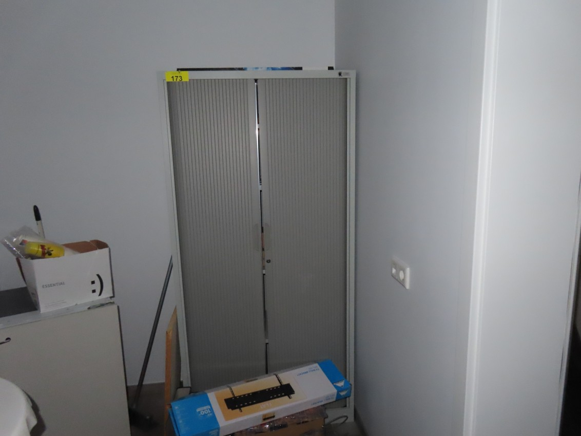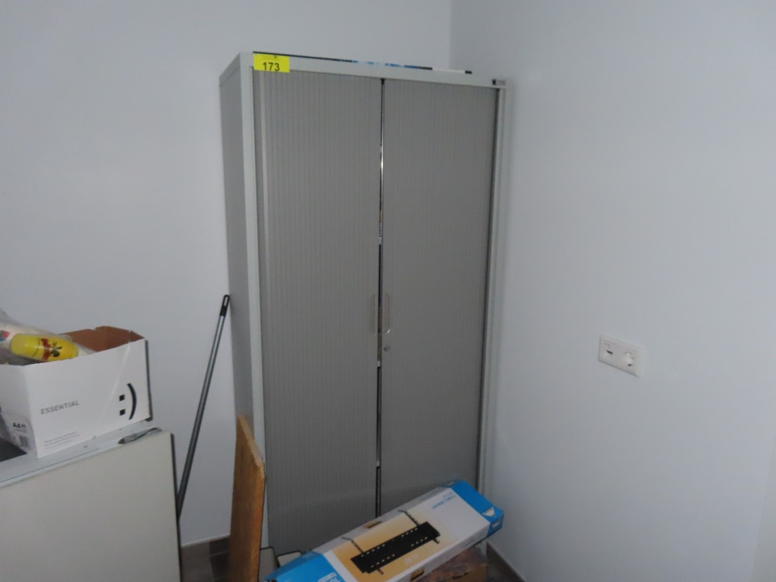 1 Metallschrank, Fabr. Jan Nowak, ca. 1,85 m x 0,90 m x 0,45 m, grau, mit Rollotüren