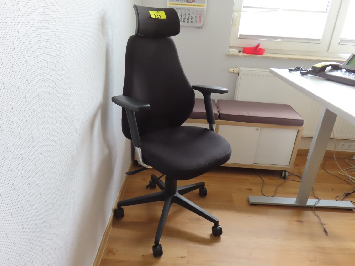 1 Bürodrehstuhl mit Armlehnen und Kopfstütze, Stoffbezug schwarz