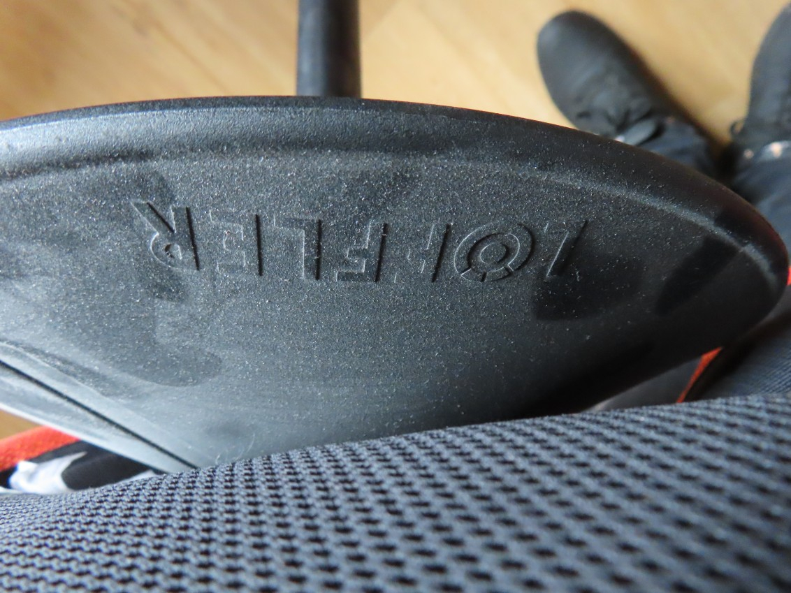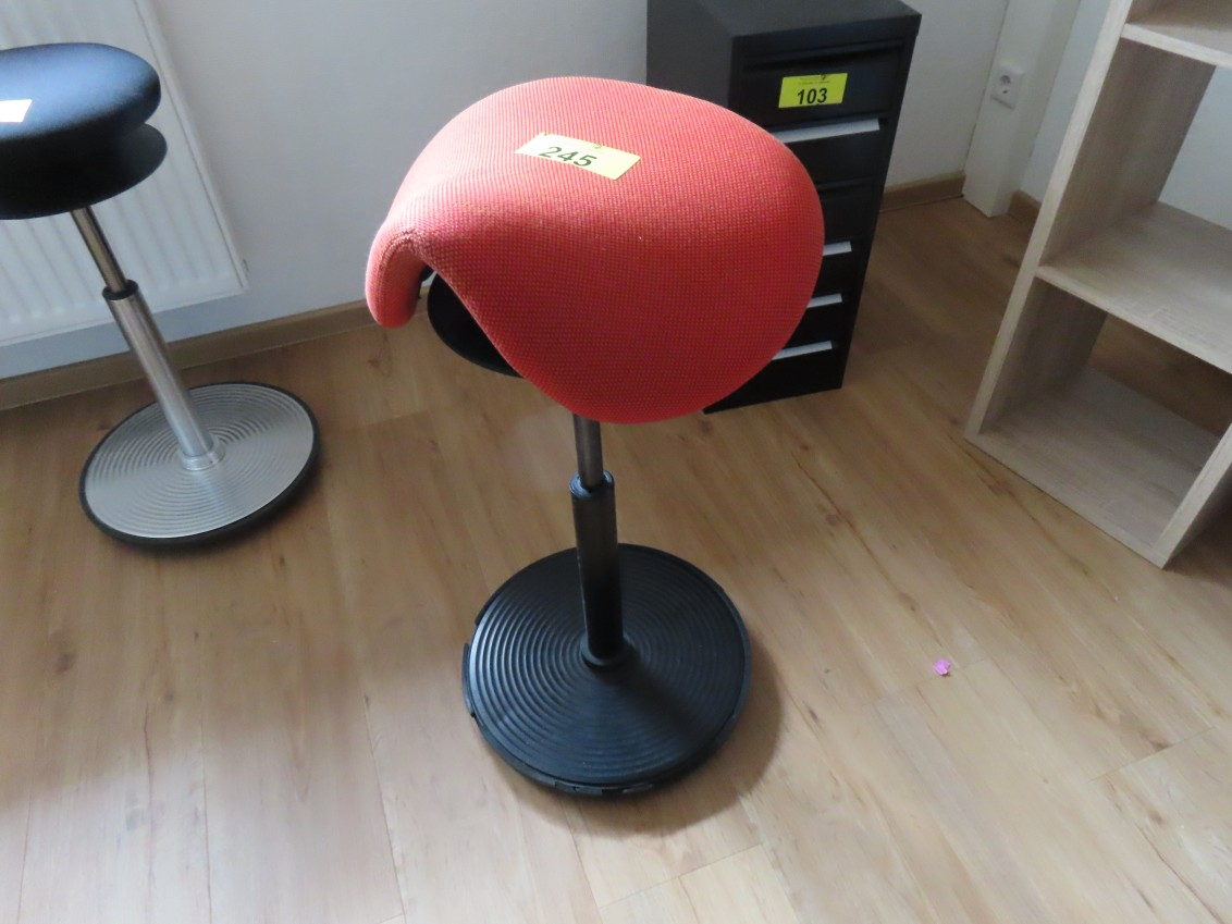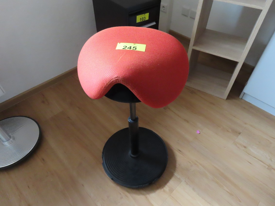 1 Sattelsitzhocker mit Bodenwippe, Stoffbezug orange, ergonomisch geformt