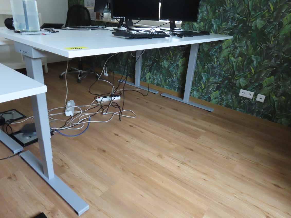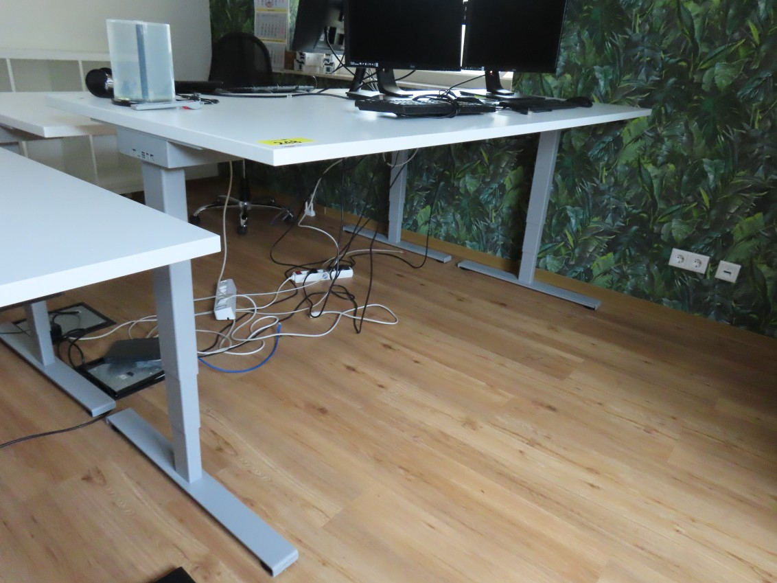 1 Schreibtisch, Fabr. Inwerk, elektrisch höhenverstellbar, ca. 0,80 m x 1,60 m, Kunststoff weiß