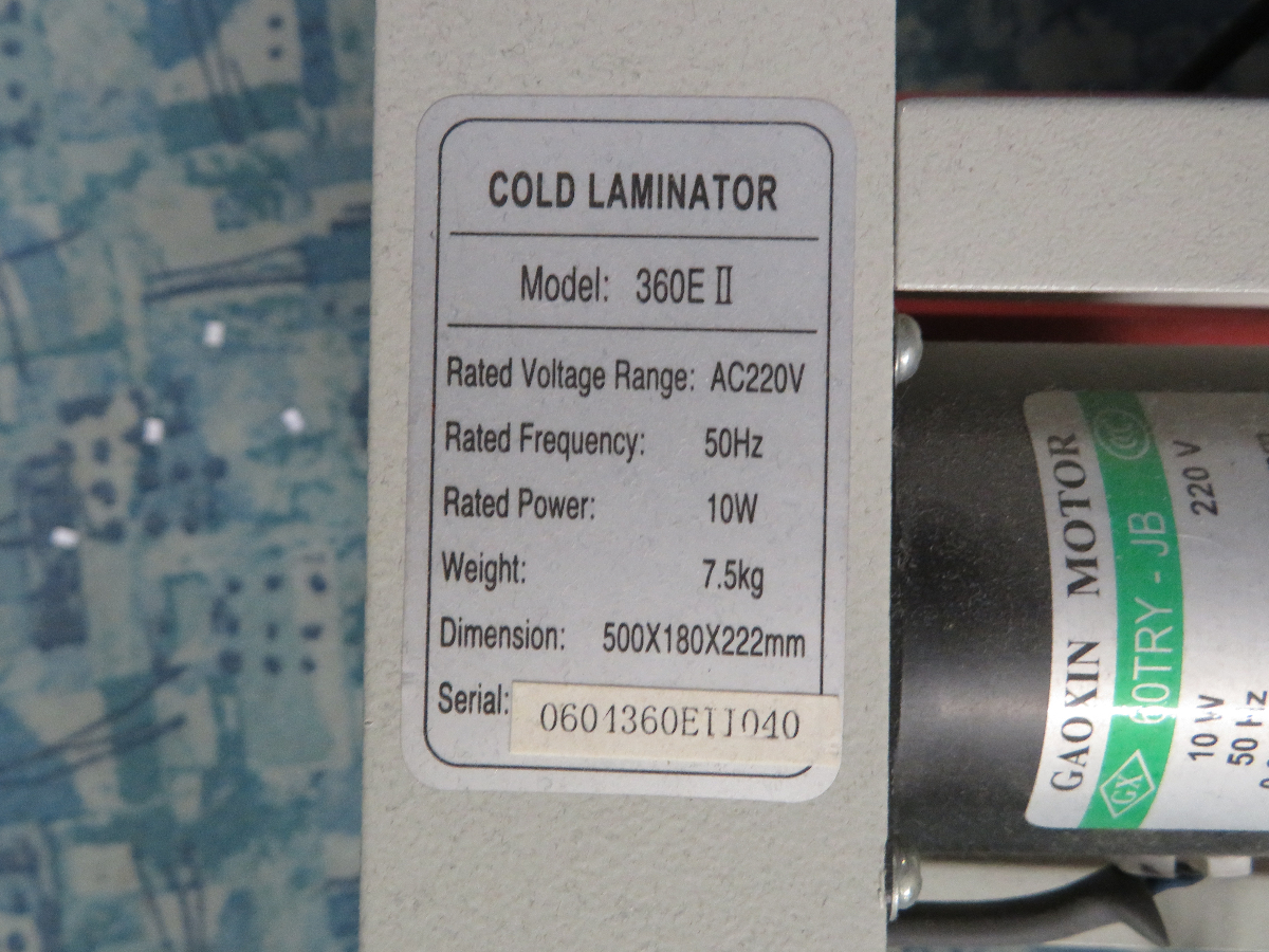 1 Kalt-Laminiergerät, Fabr. ICO, Typ 360E II, 10W, Serien-Nr. 0601360EIJ040, 500 x 180 x 222 mm