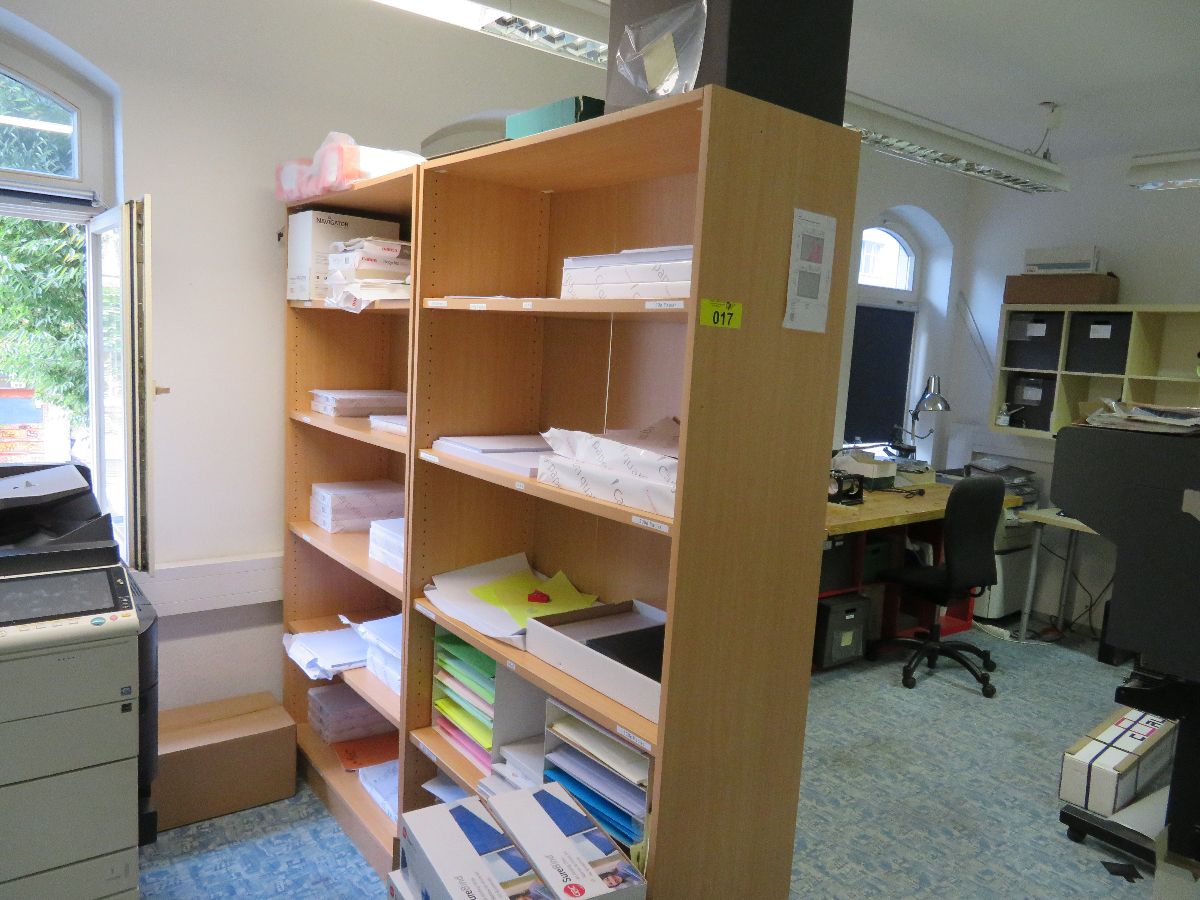 2 Aktenregale, ca. 1,80 m x 1 m, Buche