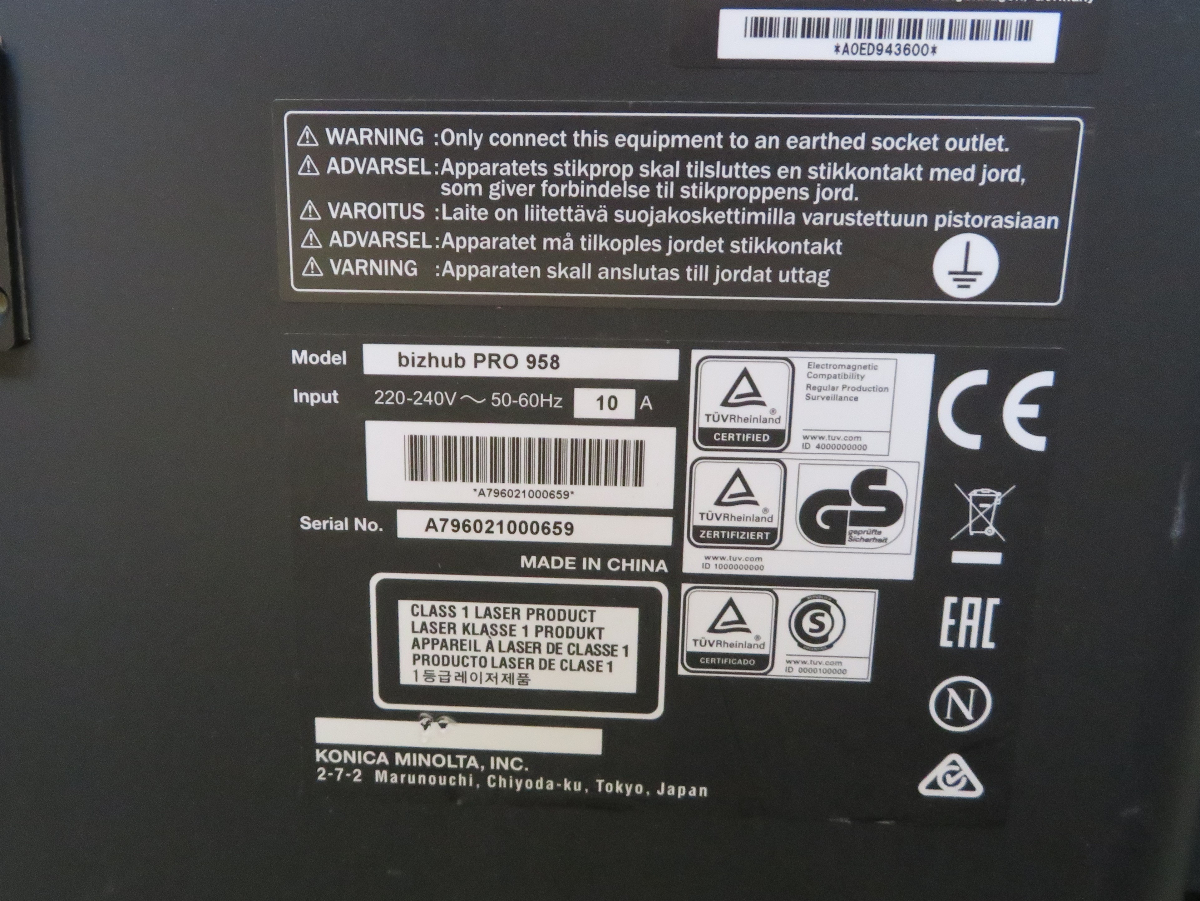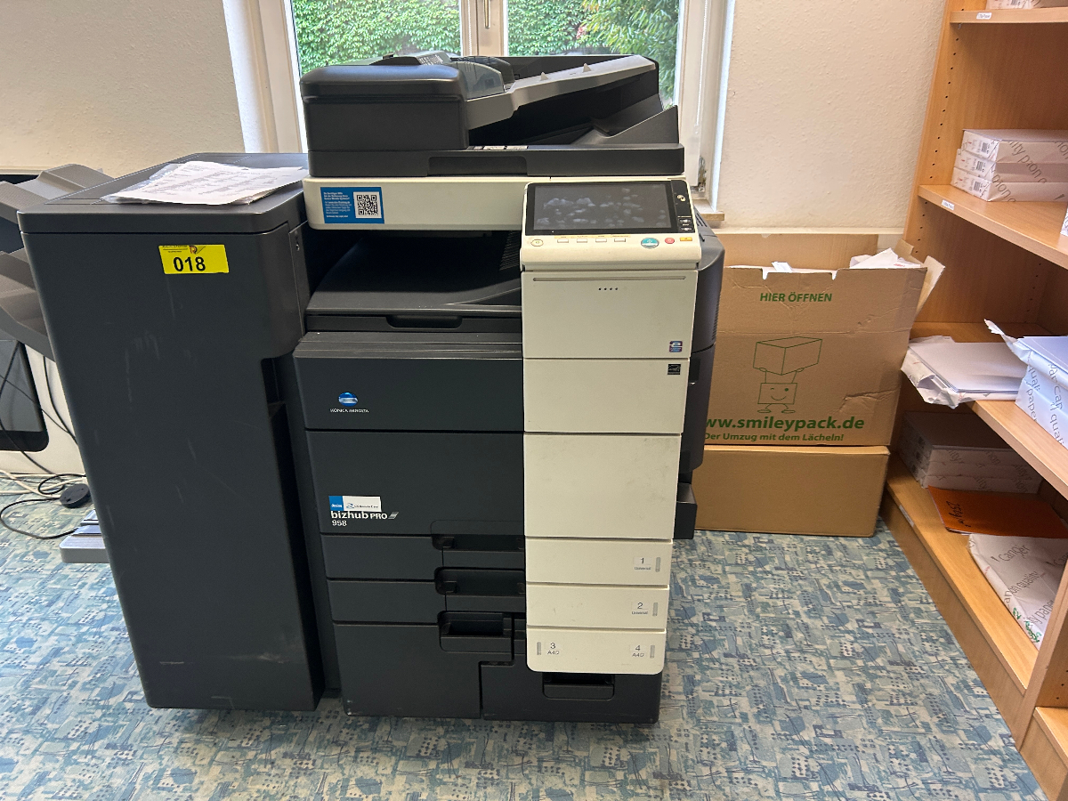 1 Produktions-Drucksystem, Fabr. Konica Minolta, Typ bizhub PRO 958, Serien-Nr. A796021000659, mit Finisher, Typ FS-537, Serien-Nr. A87HWYA001301, Baujahr 2008