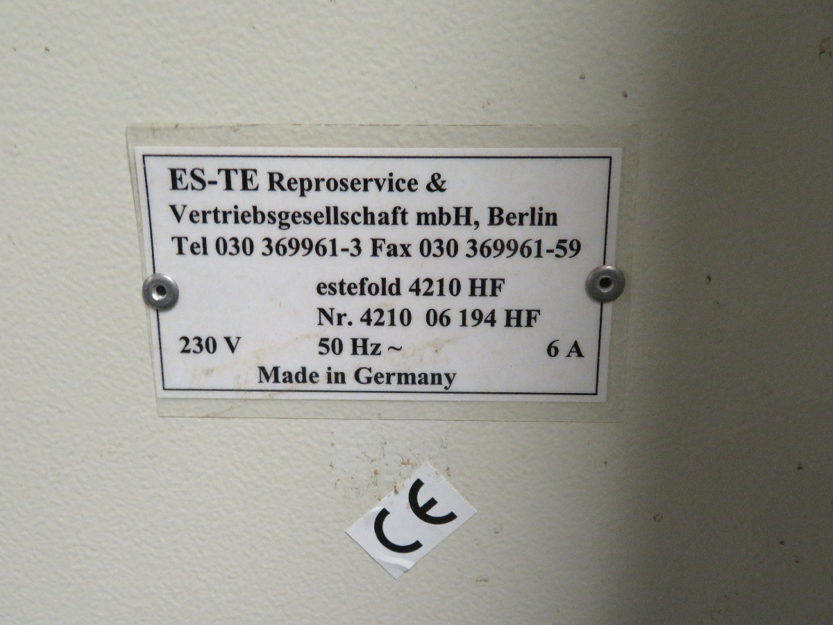 1 Großformat-Faltsystem, Fabr. Estefold, Typ estefold 4210 HF, Serien-Nr. 4210 06 194 HF