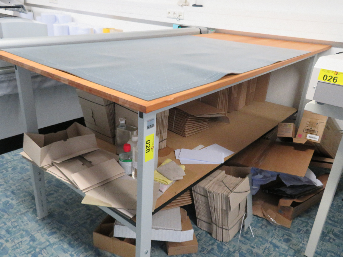 1 Arbeitstisch, Fabr. Rau, ca. 2 m x 1 m, manuell höhenverstellbar