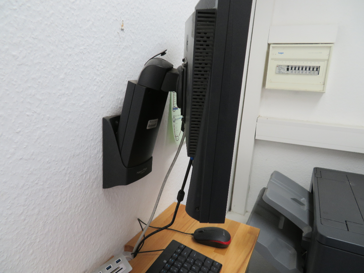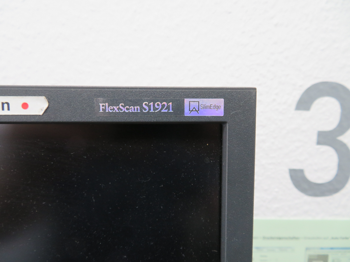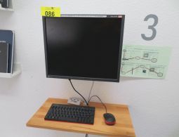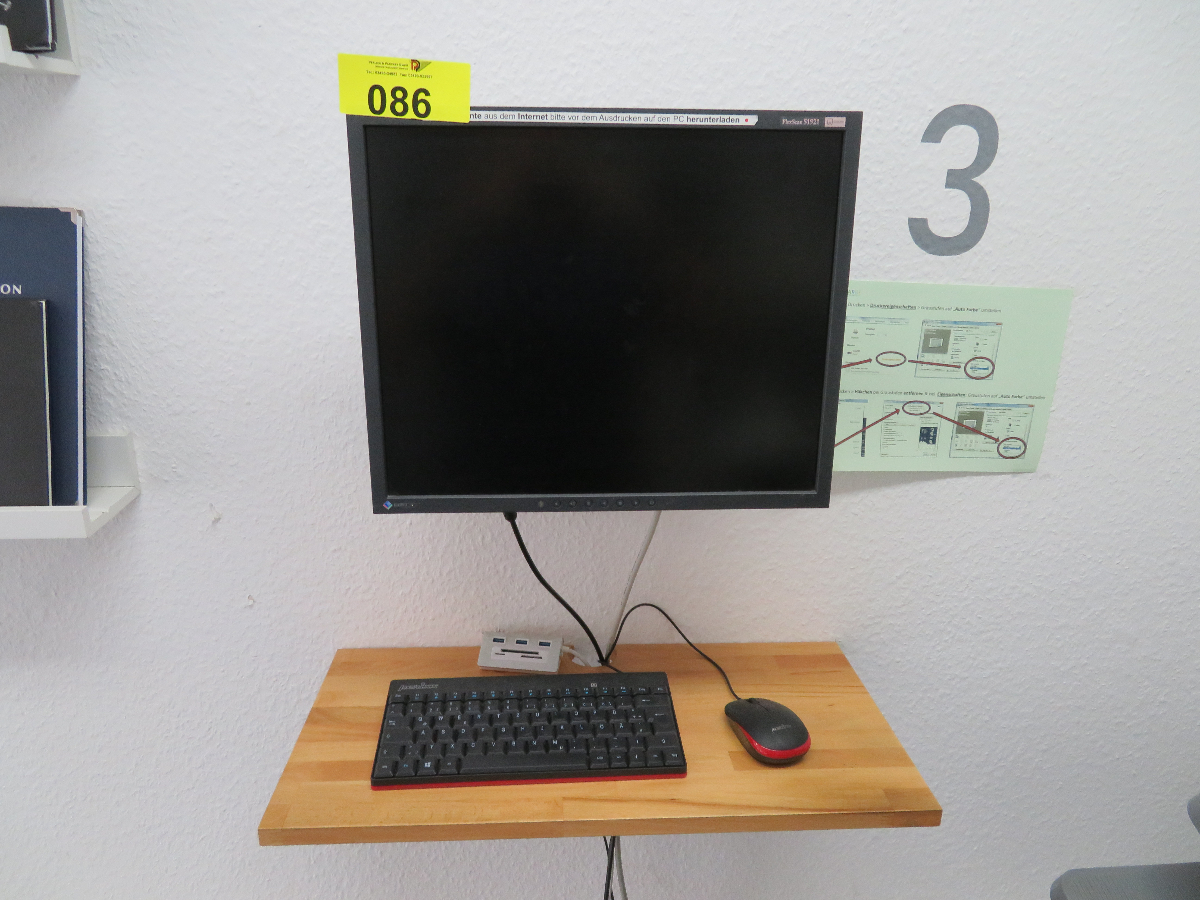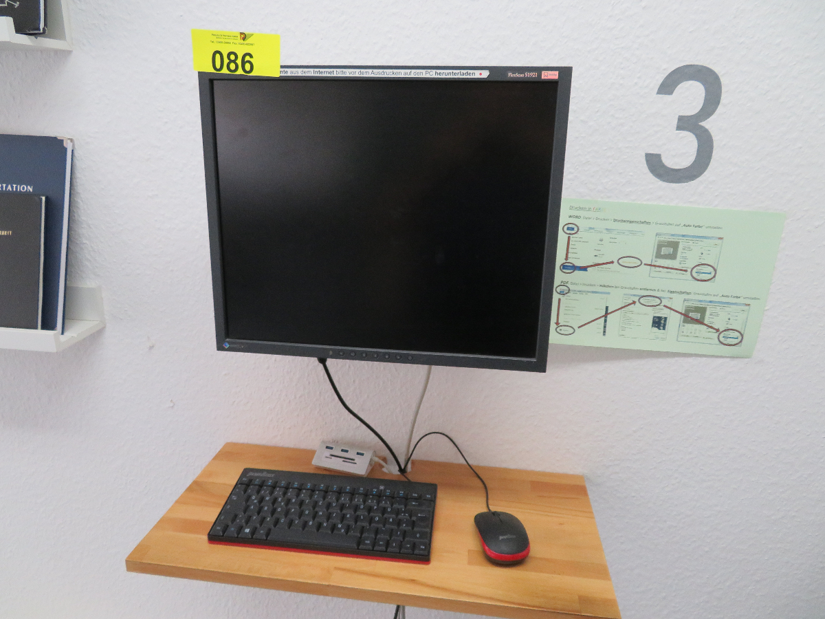 1 Bildschirm, Fabr. Eizo, Typ FlexScan S1921, 19 Zoll, wandmontiert, mit Maus und Tastatur