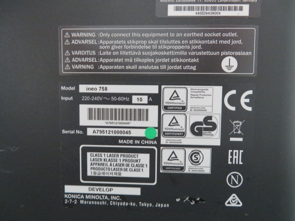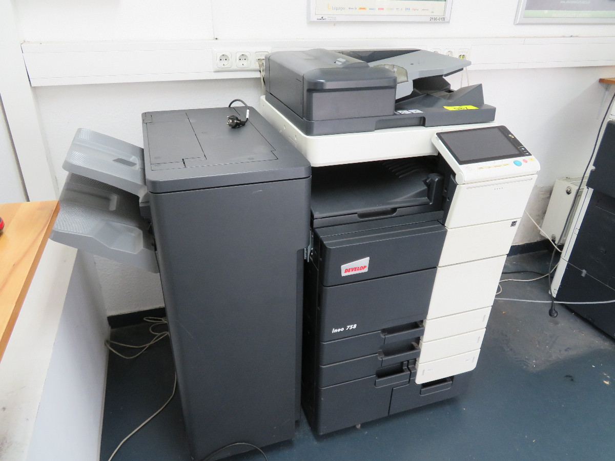 1 Multifunktionsdrucker, Fabr. Konica Minolta, Typ Develop ineo 758, Serien-Nr. A795121000045, mit Finisher, Typ FS-537, Serien-Nr. A87HWY1002913, Baujahr 2009