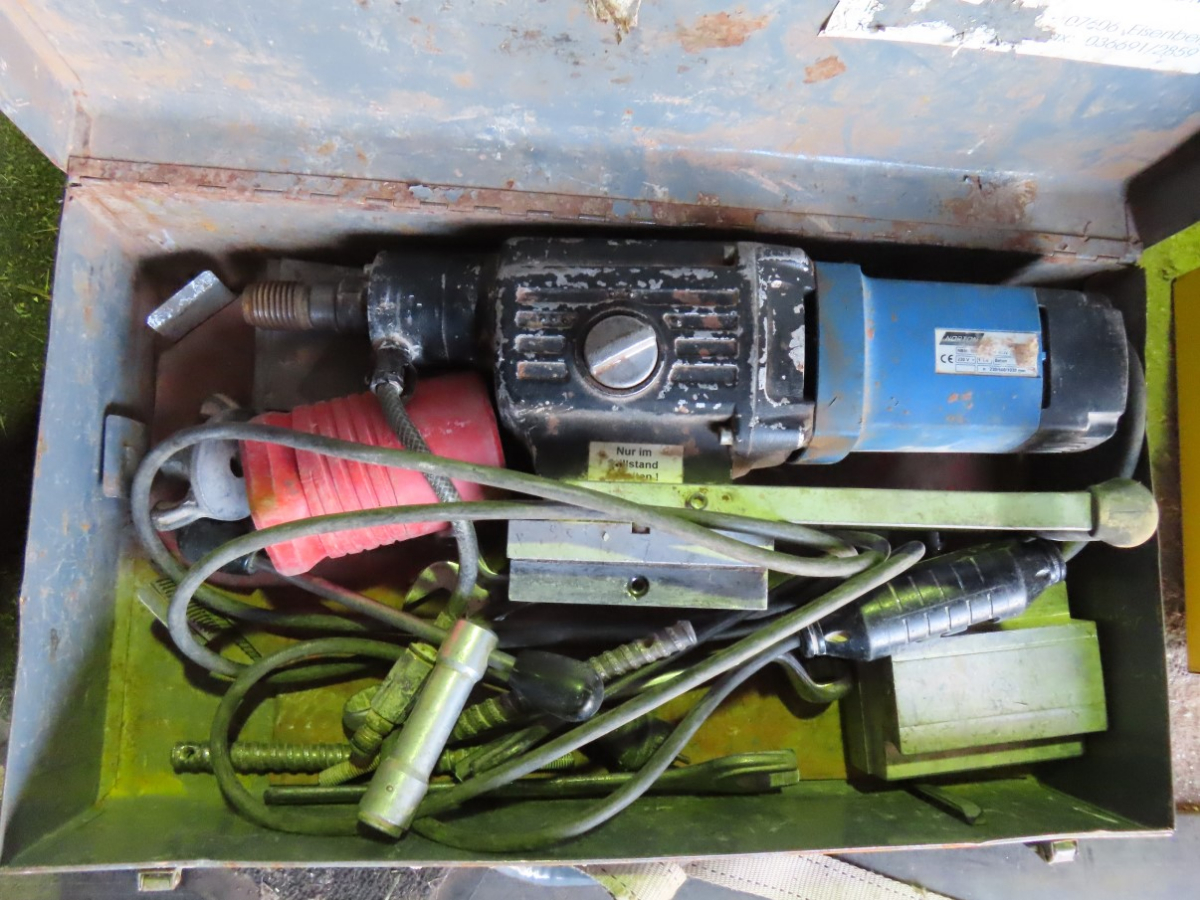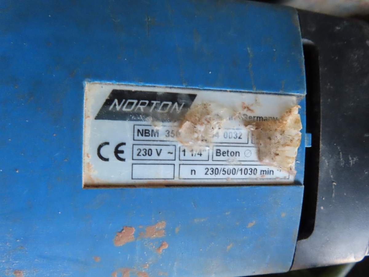2 Kernbohrmaschinen, 1 x Fabr. Norton, Typ wahrscheinlich NBM 350, 1 x Fabr. Marcrist, Typ DDM3-230, Baujahr 2011, 1500 W, Serein-Nr. M1113, diverse Bohrkronen, unterschiedliche Größen, mit 1 Kernbohrständer, Fabr. Norton