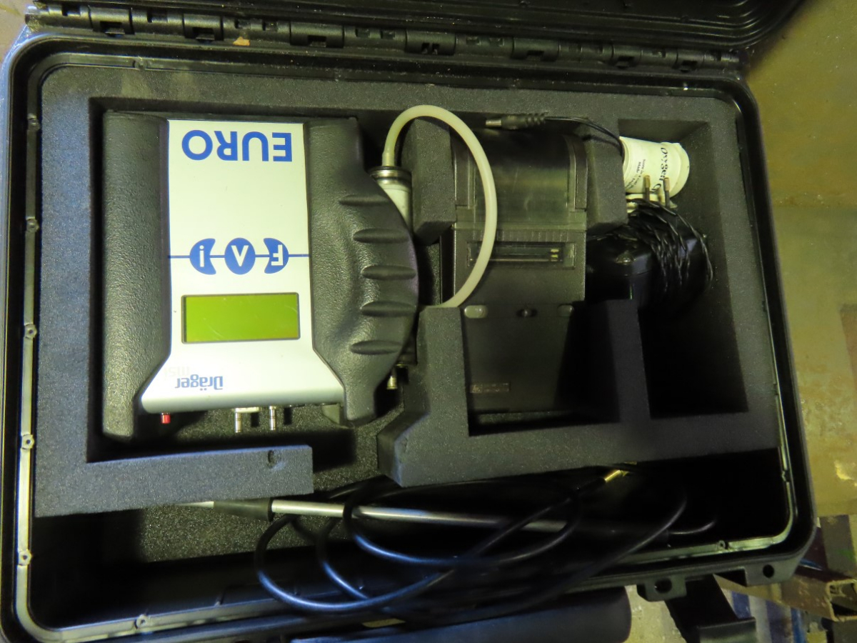 1 Abgasanalysemessgerät, Fabr. Dräger, MSI 150-4, Serien-Nr. 5600593 / KRRL-004, mit 1 Thermo-Drucker, Fabr. Hewlett Parckard, im Koffer