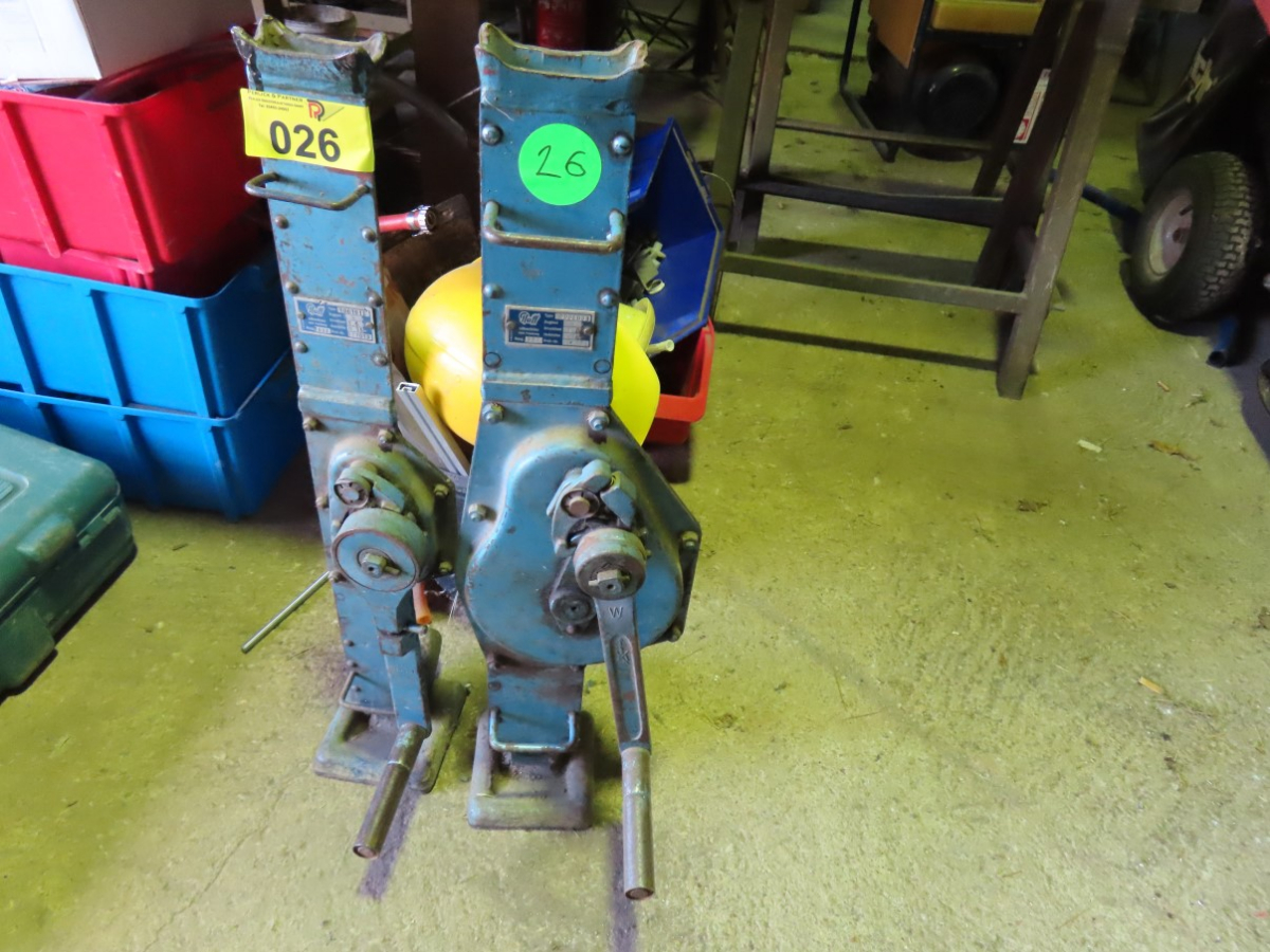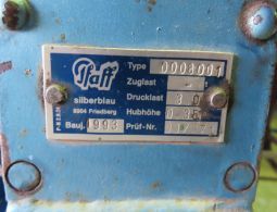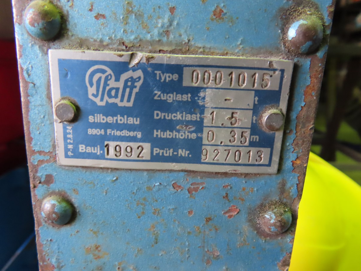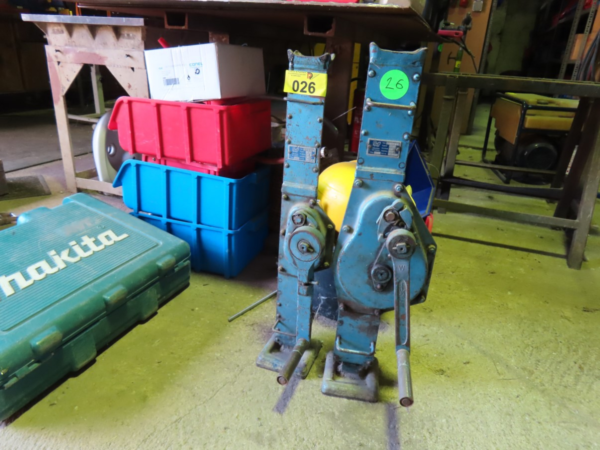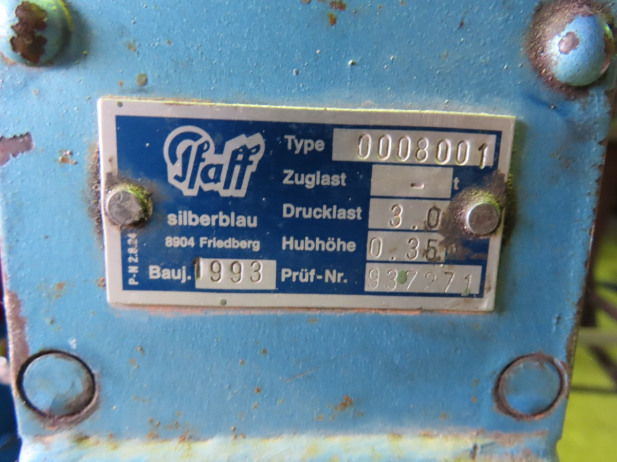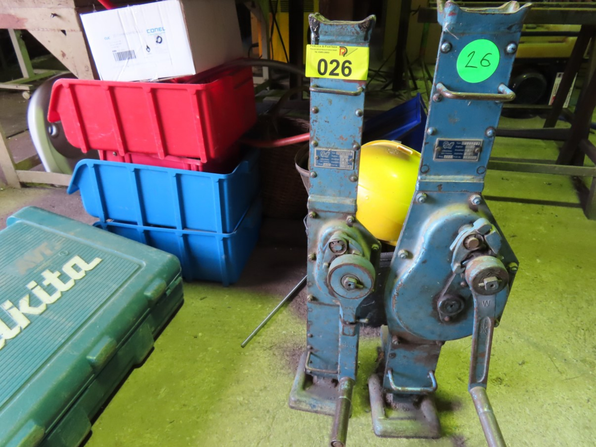 2 Hubwinden, Fabr. Pfaff, 1 x Typ 0008001, Drucklast 3 t, Baujahr 1993 und 1x Typ 0001015, Drucklast 1,5 t, Baujahr 1992